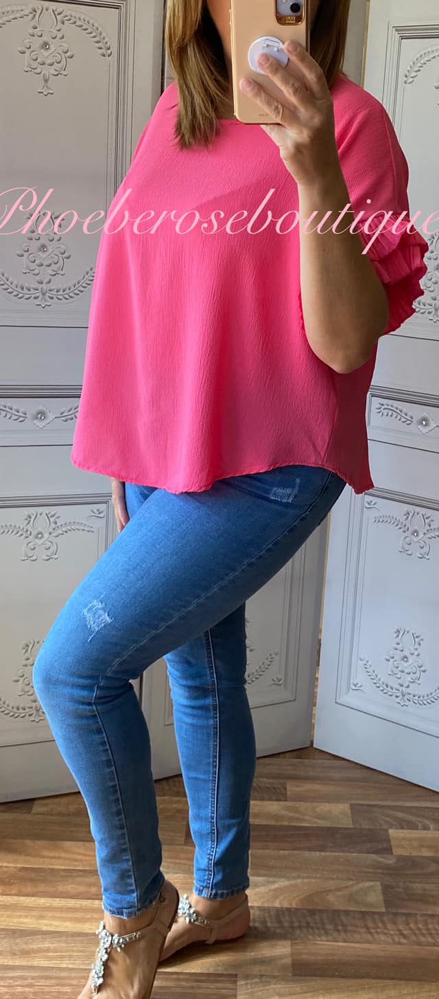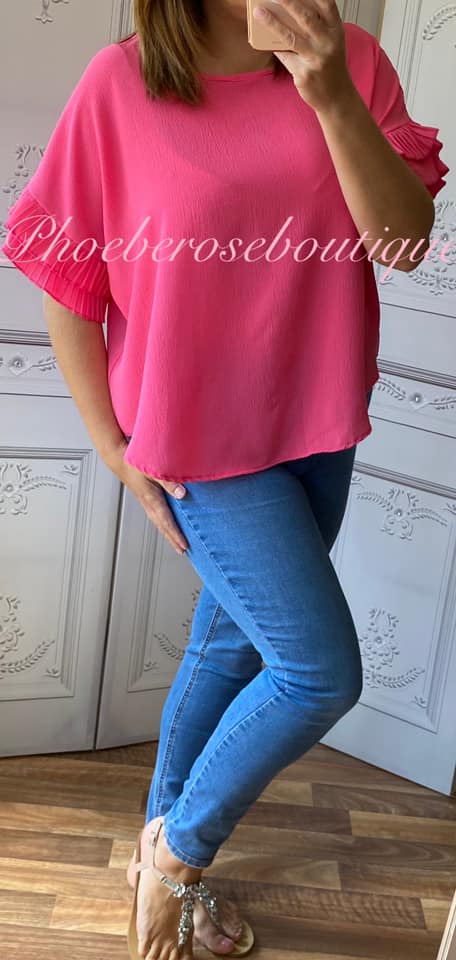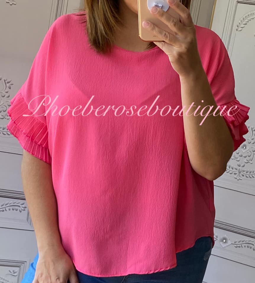 Be the first to review “Pleated Frill Crepe Feel Top – Hot Pink”