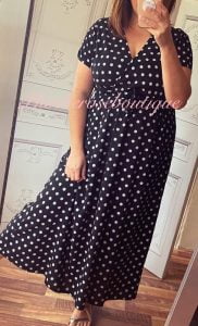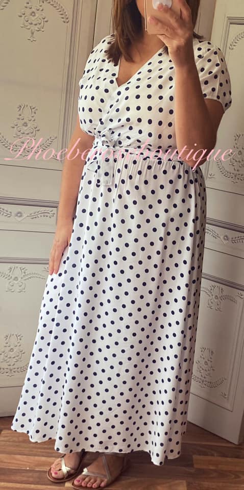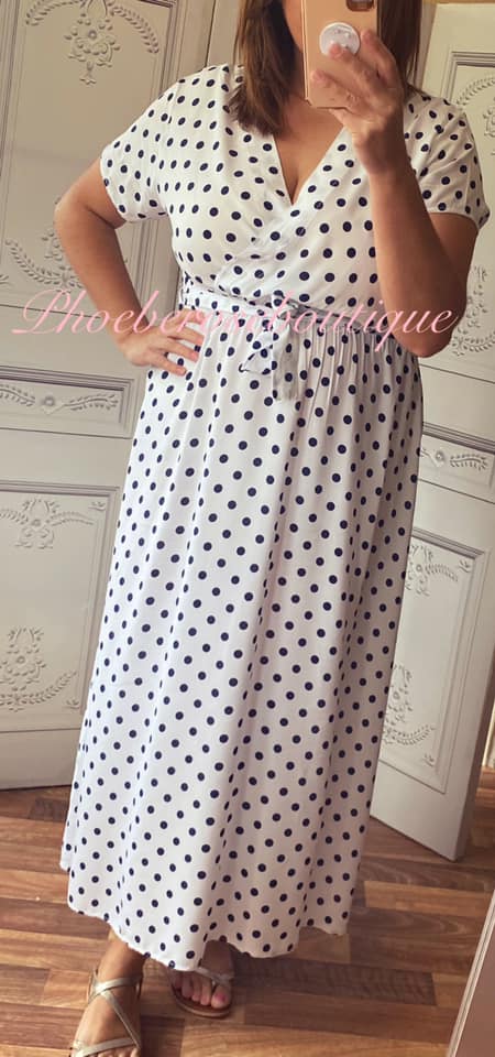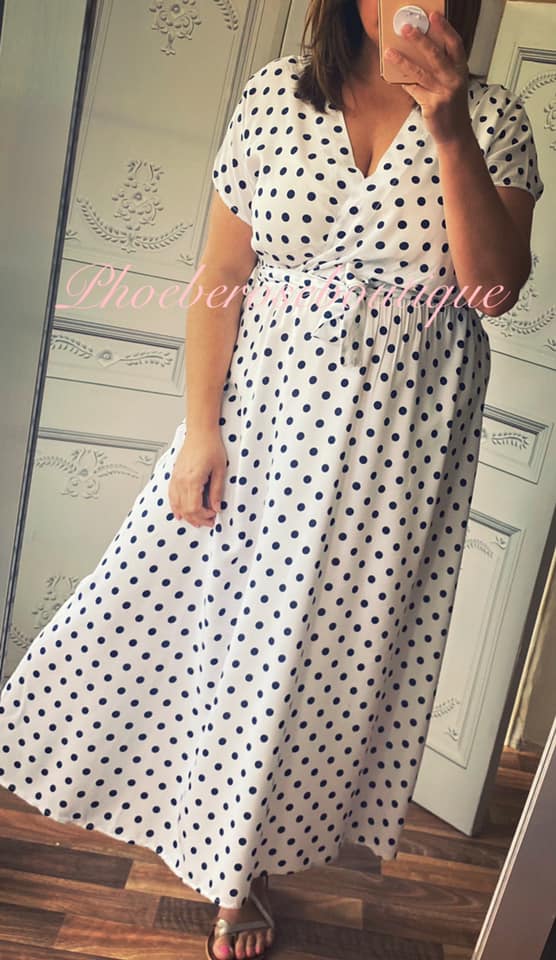 Be the first to review “Polka Dot Wrap Dress – White/Navy”