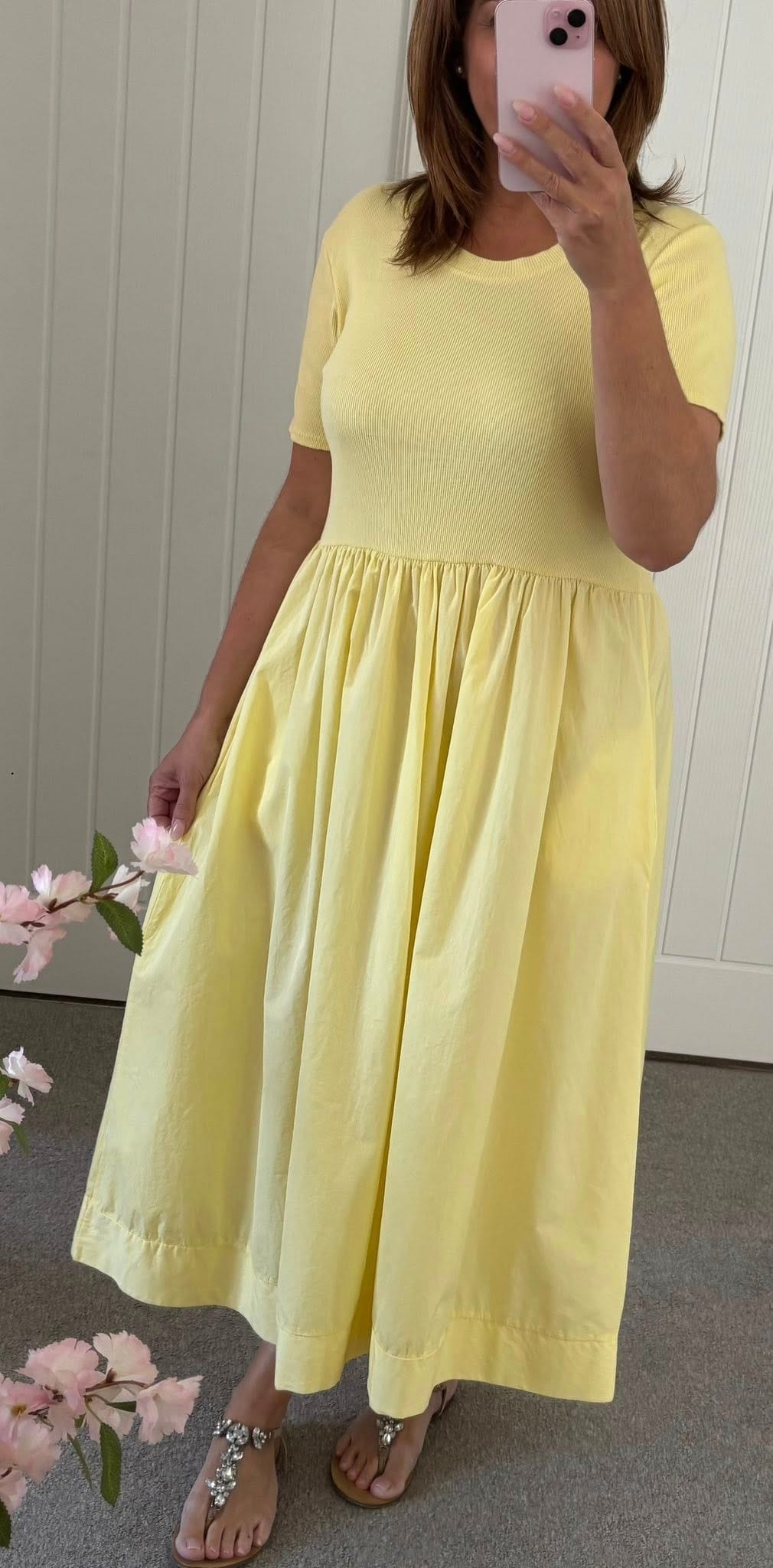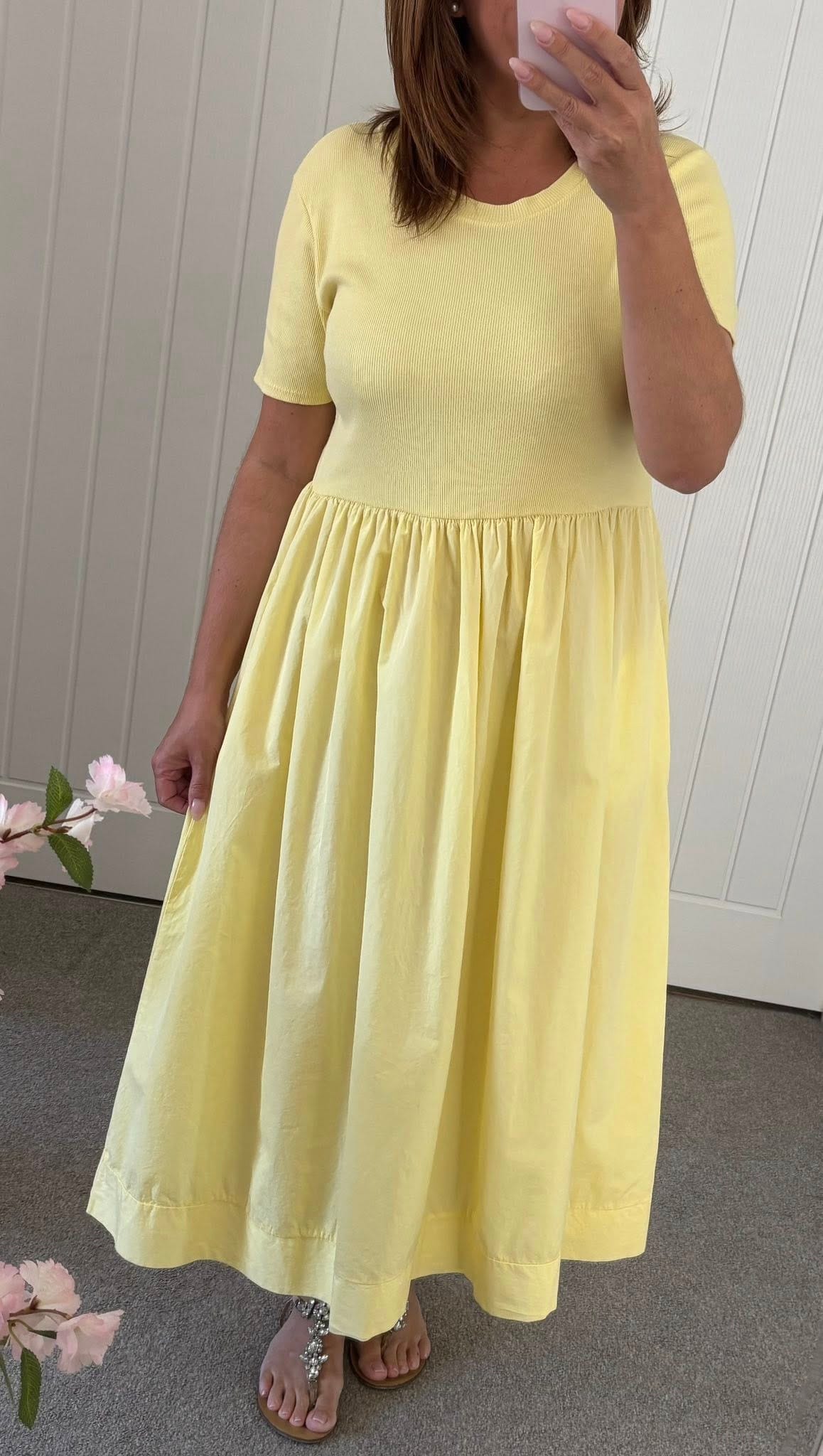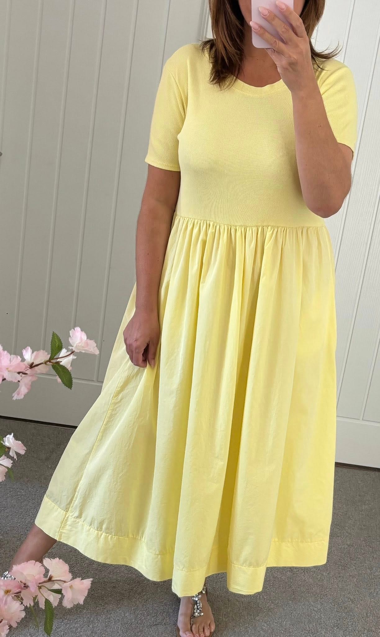 Ribbed Jersey Cotton Feel Pocket Skirt Dress – Lemon
