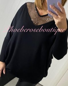 *Soft stretch ribbed knit with statement diamante mock buttons