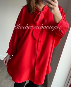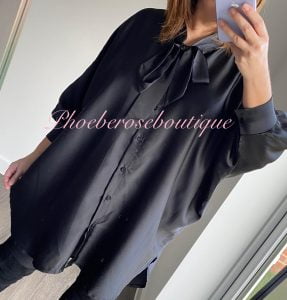 Be the first to review “Satin Loose Fit Oversized Pussy Bow Shirt – Champagne”