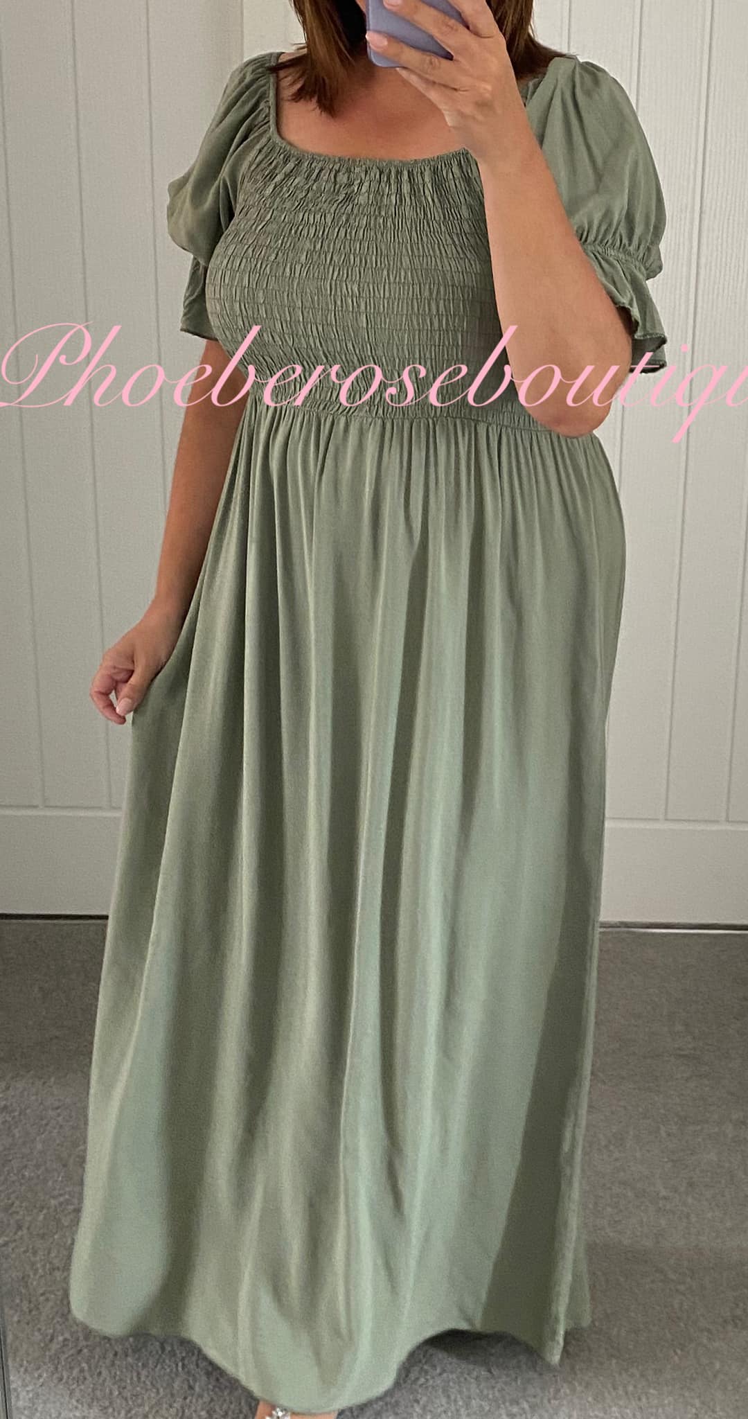 Shirred Bust Puff Sleeve Maxi Dress – Khaki