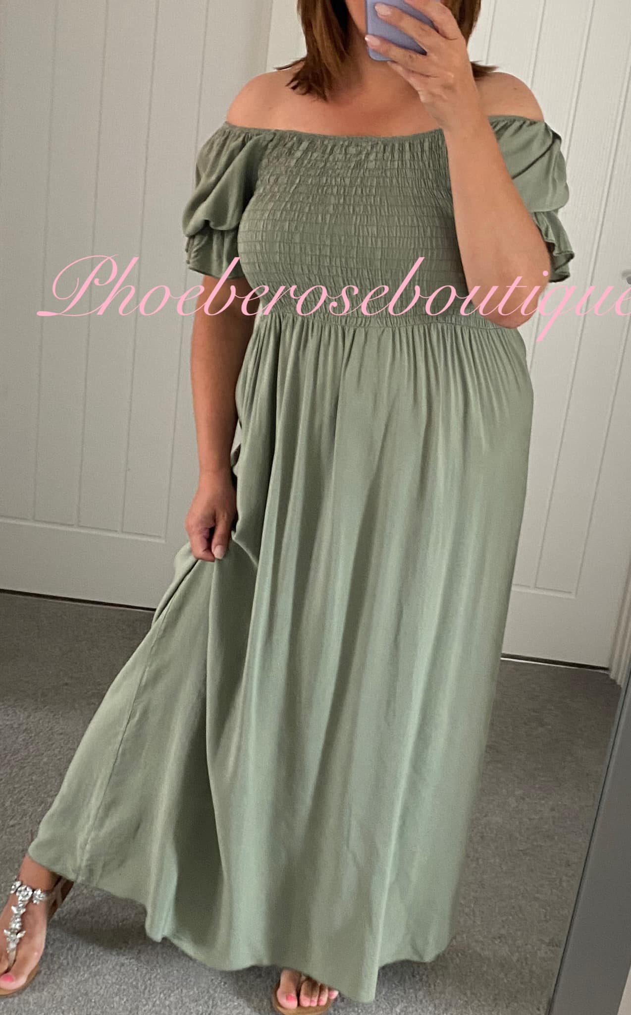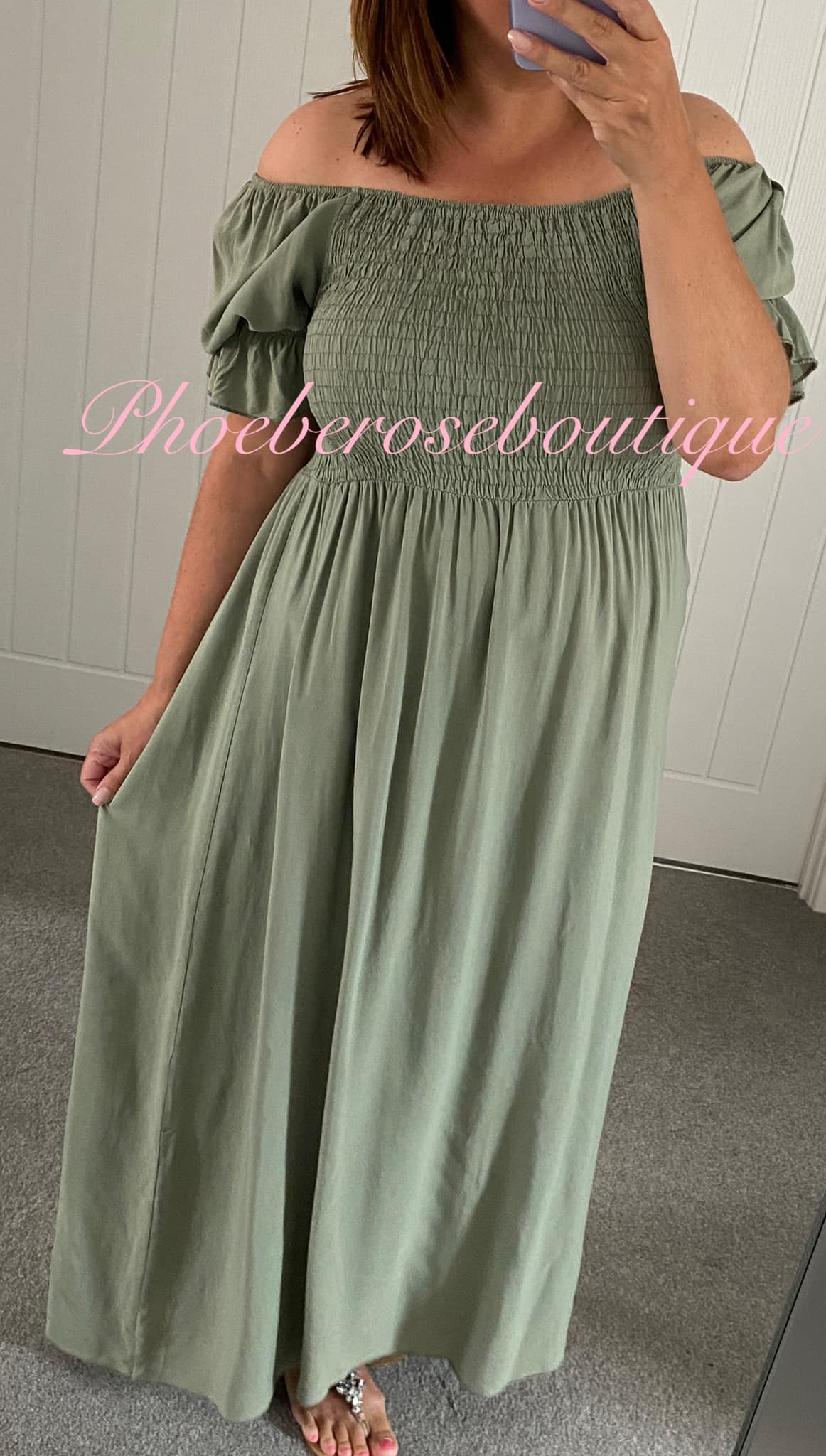 Be the first to review “Shirred Bust Puff Sleeve Maxi Dress – Khaki”