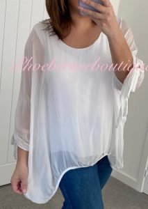 Be the first to review “Silk Oversized Hi-Low Tie Sleeve Top – Turquoise”
