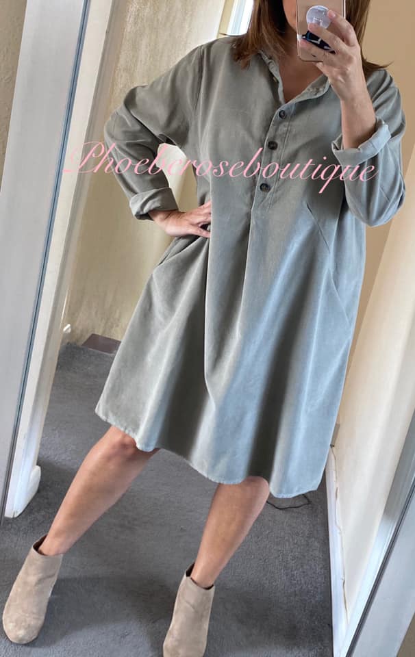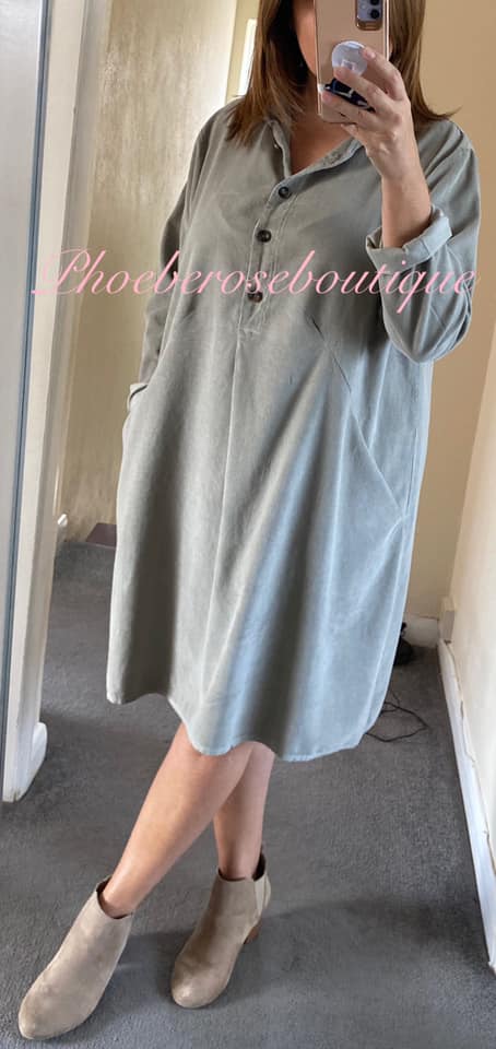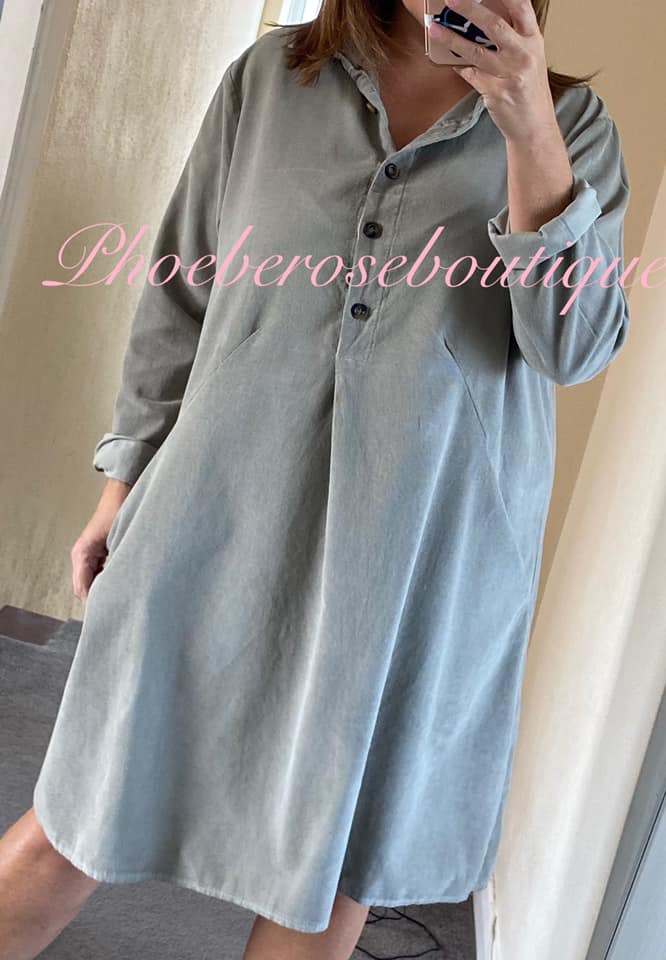 Soft Baby Cord Loose Fit Pocket Dress – Stone