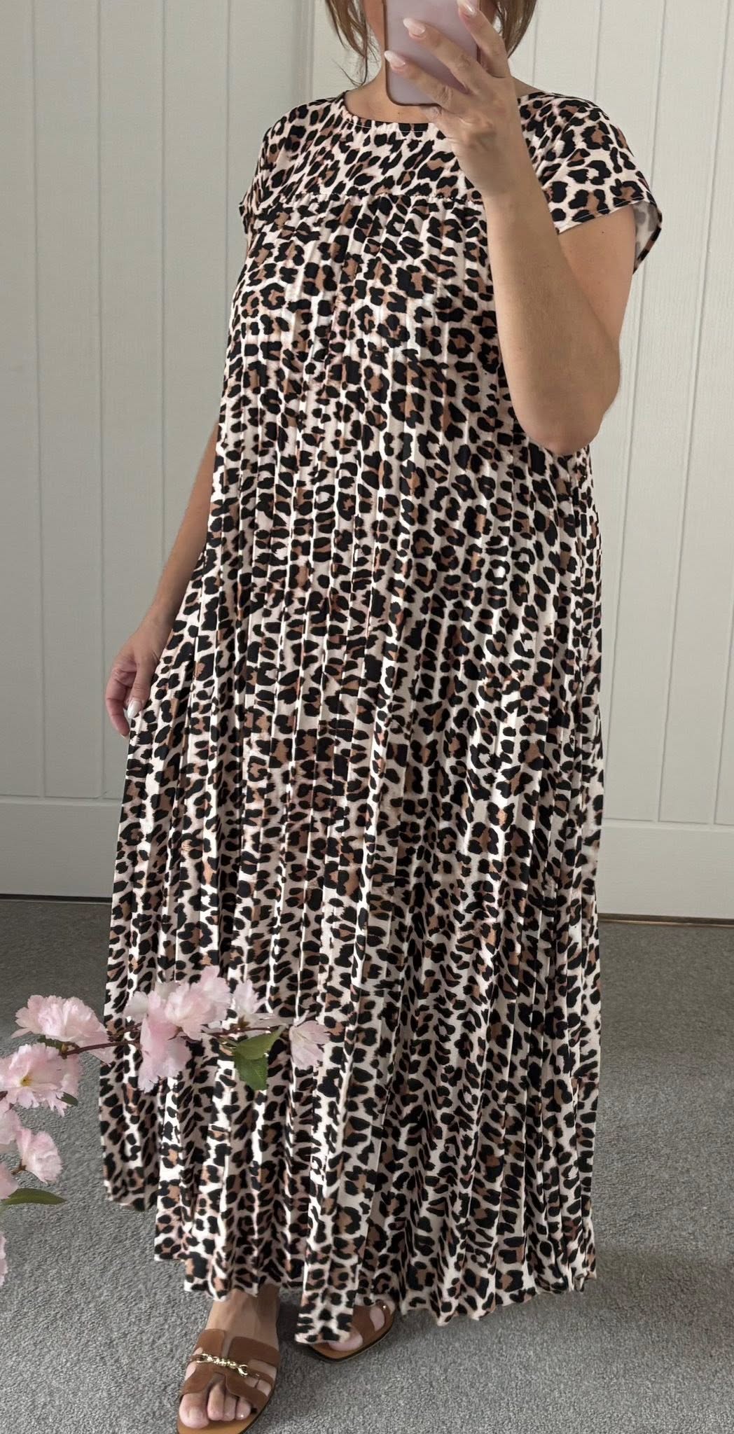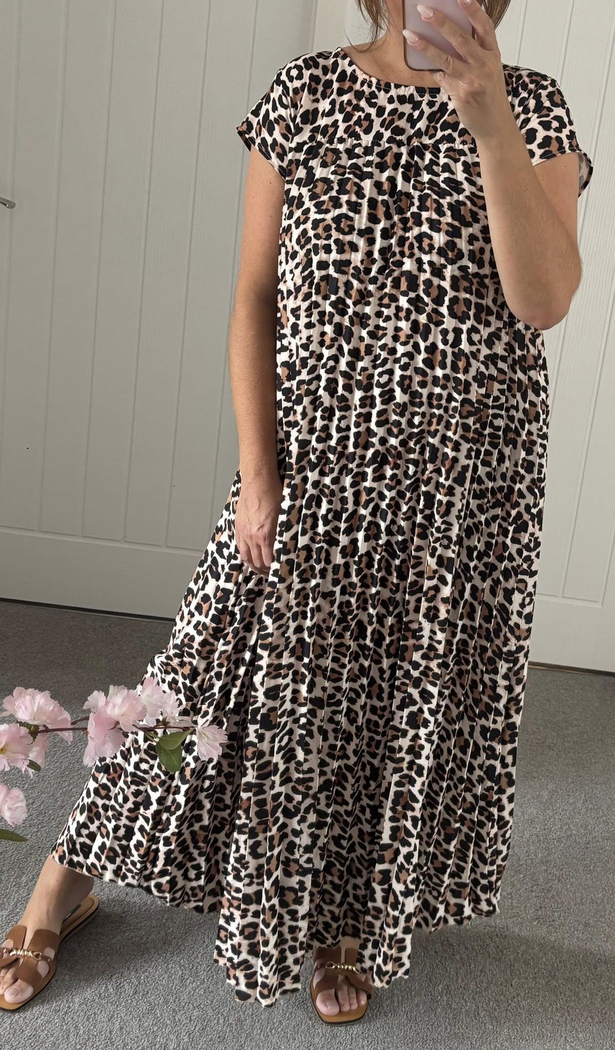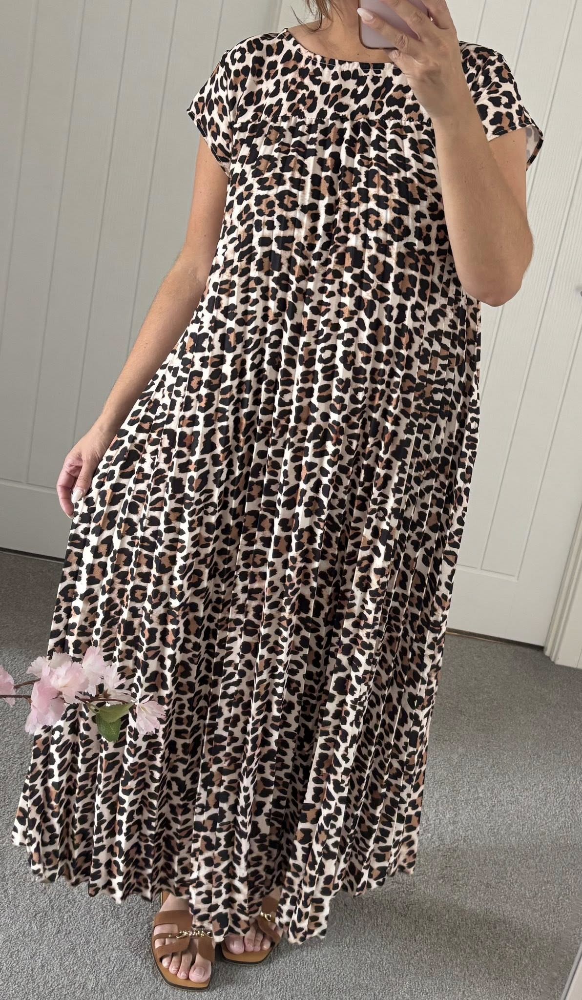 Gorgeous soft feel stretch satin feel lepo print maxi dress with cap sleeves flattering fit flares from the bust – Pockets in side of skirt – One size fits up to a 16