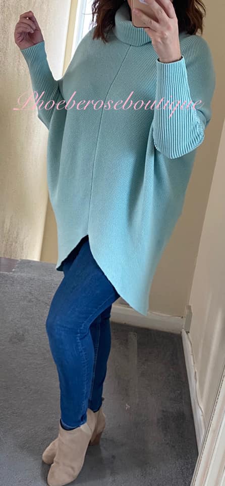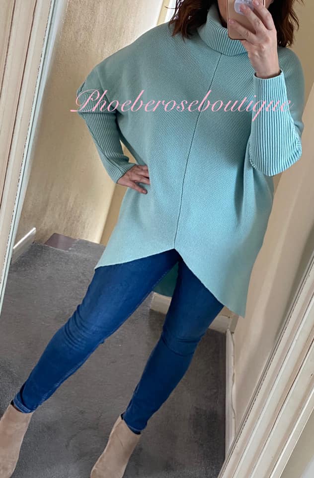 Be the first to review “Soft Ribbed Slouch Roll Neck Hi/Low Jumper – Mint”