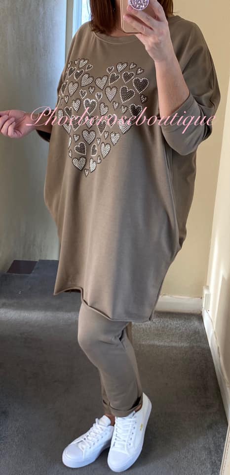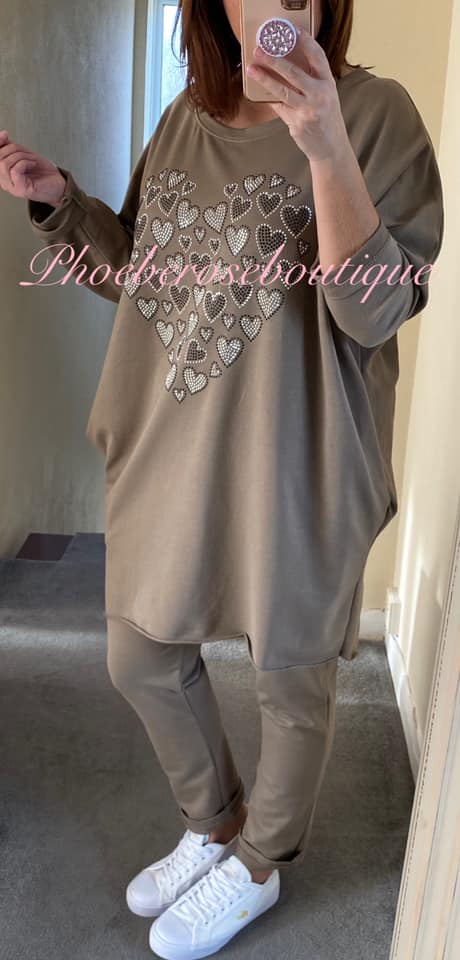 Sparkly Heart 2 Piece Set/Suit – Mocha