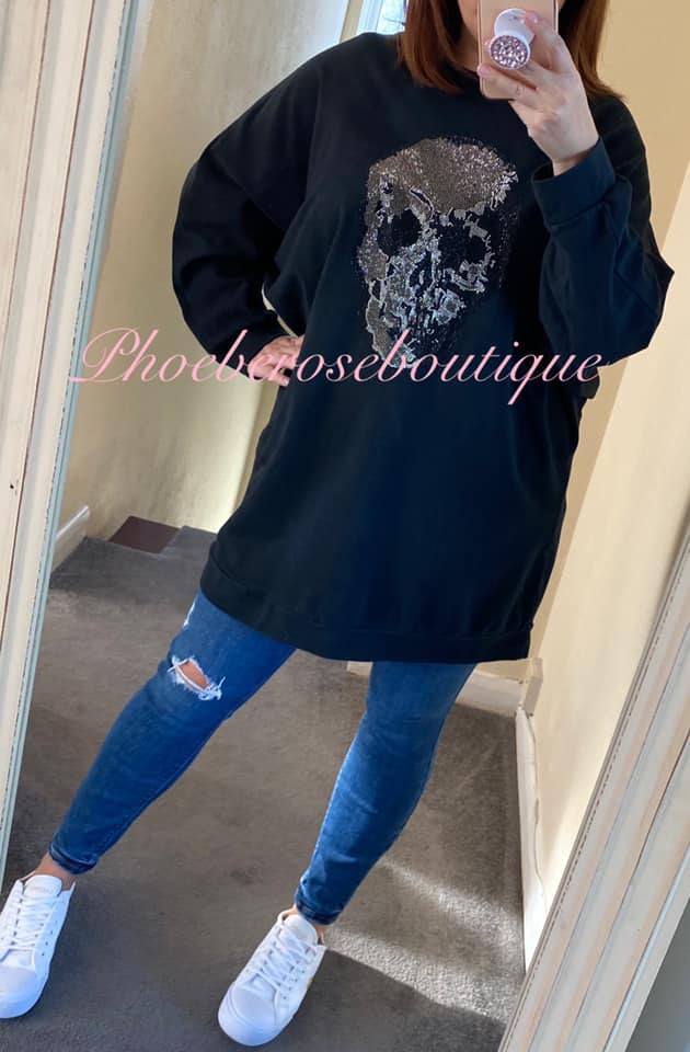 Be the first to review “Sparkly Skull Embellished Sweat Zip Back Top – Black”