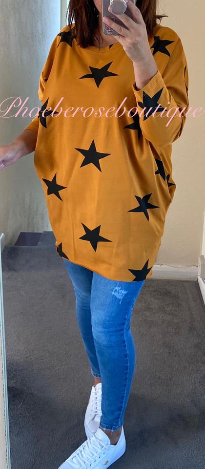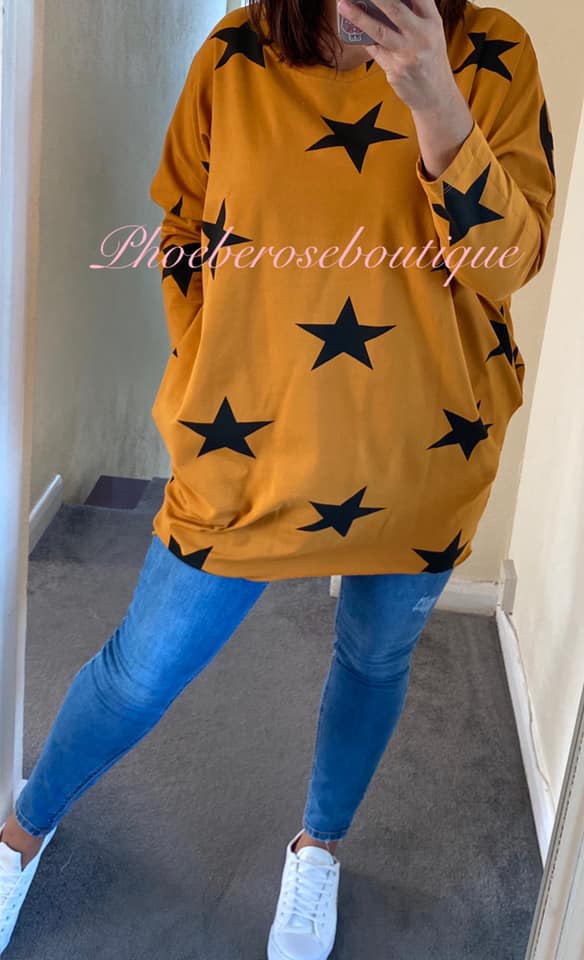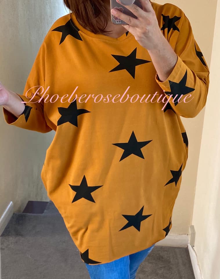 Star Print Stretch Jersey Long Sleeve Pocket Tunic Top – Mustard