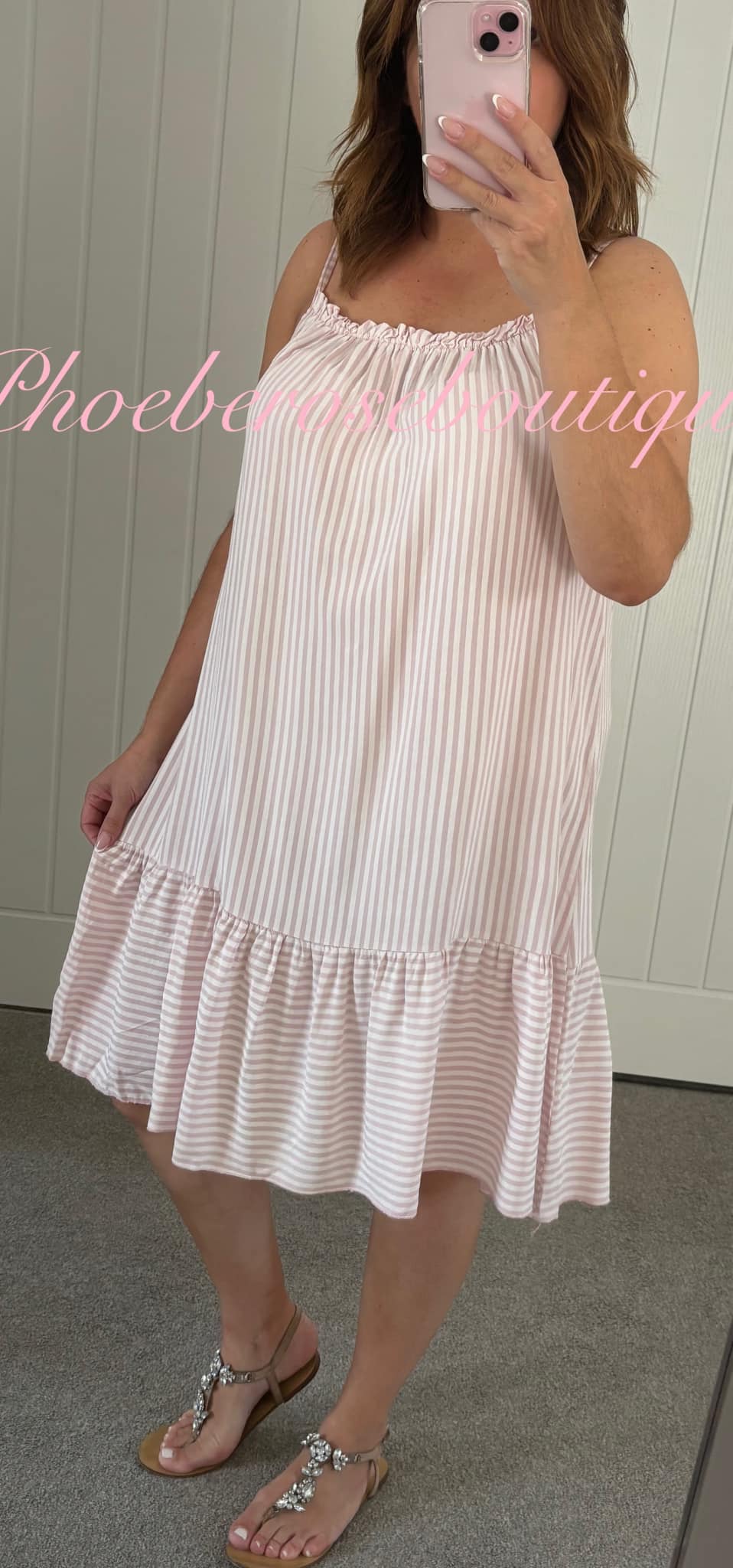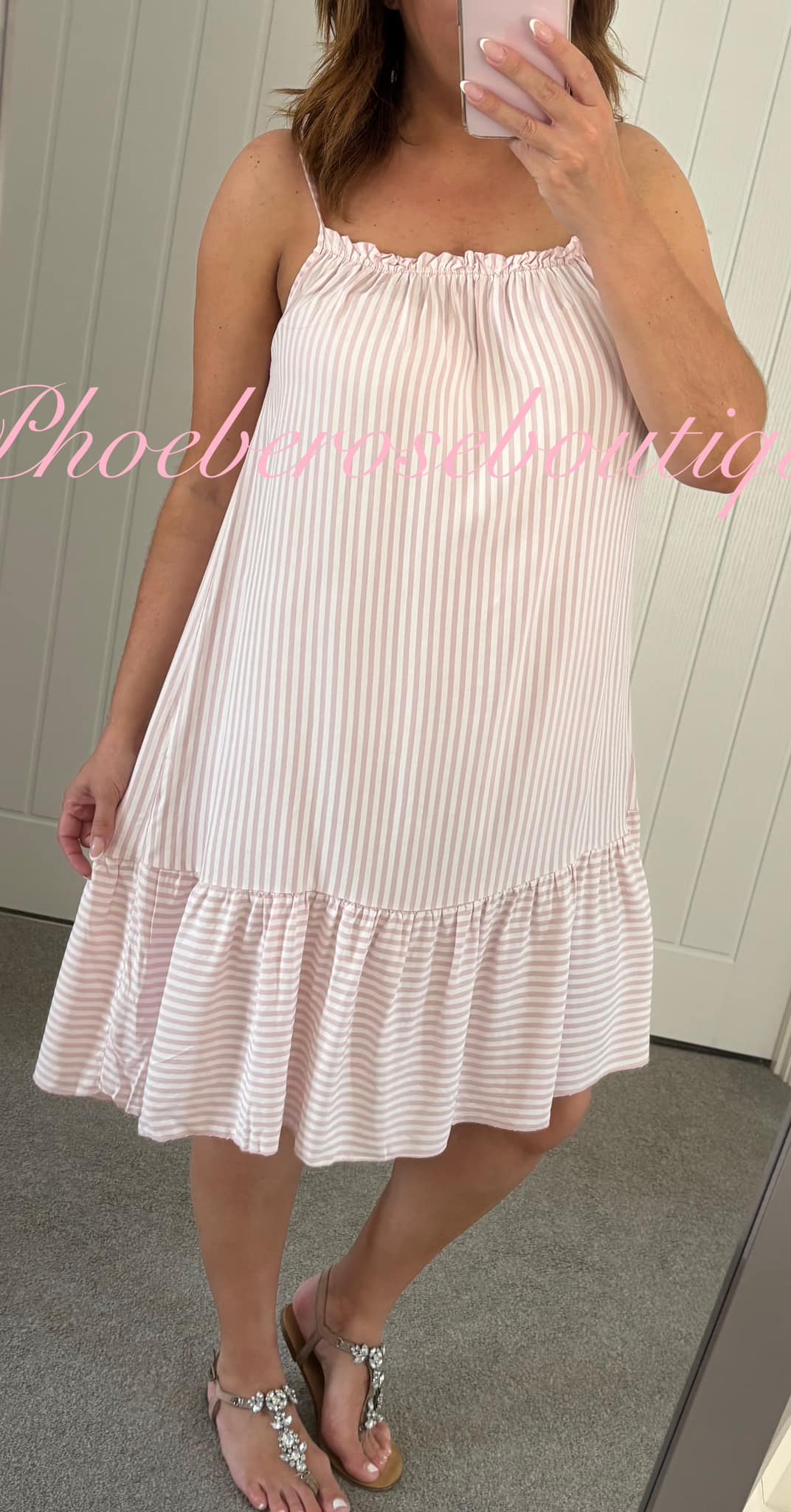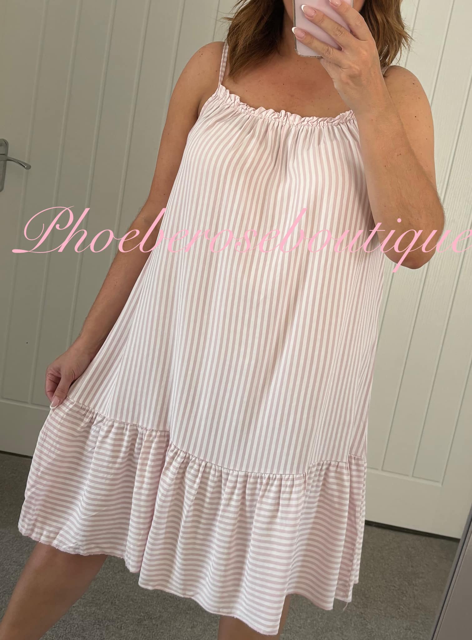 Strappy Frill Hem Soft Stripe Sun Dress – Soft Pink