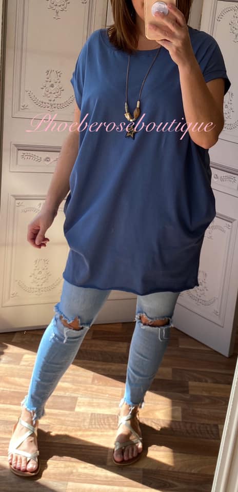 Be the first to review “Stretch Jersey Cap Sleeve Pocket Necklace Tunic Top – Denim Blue”