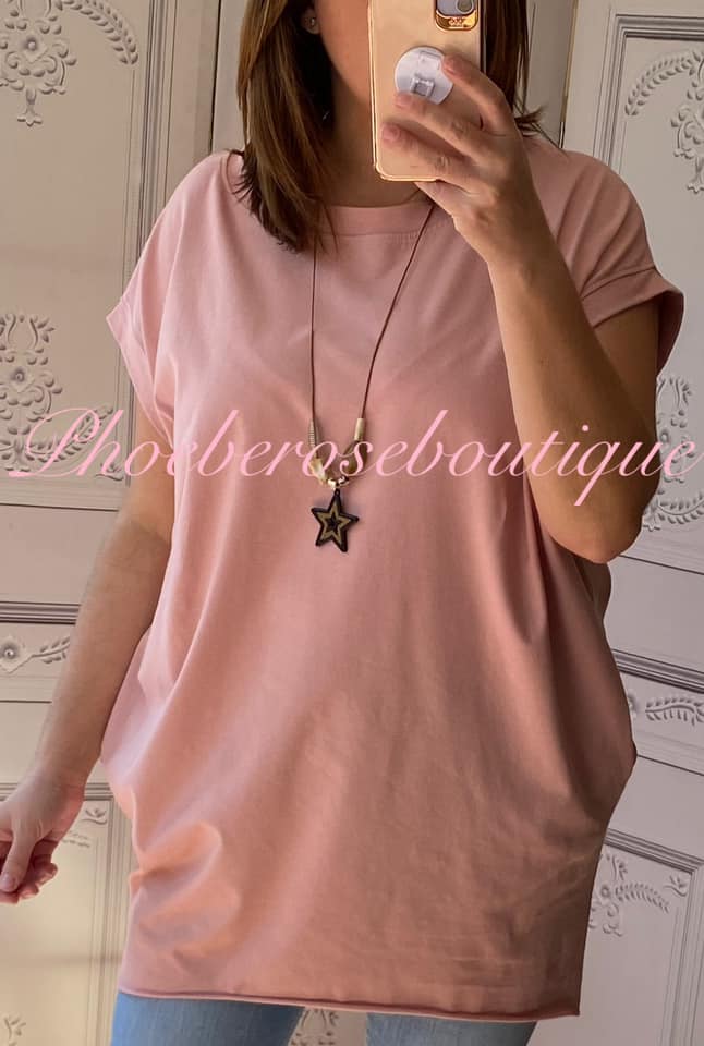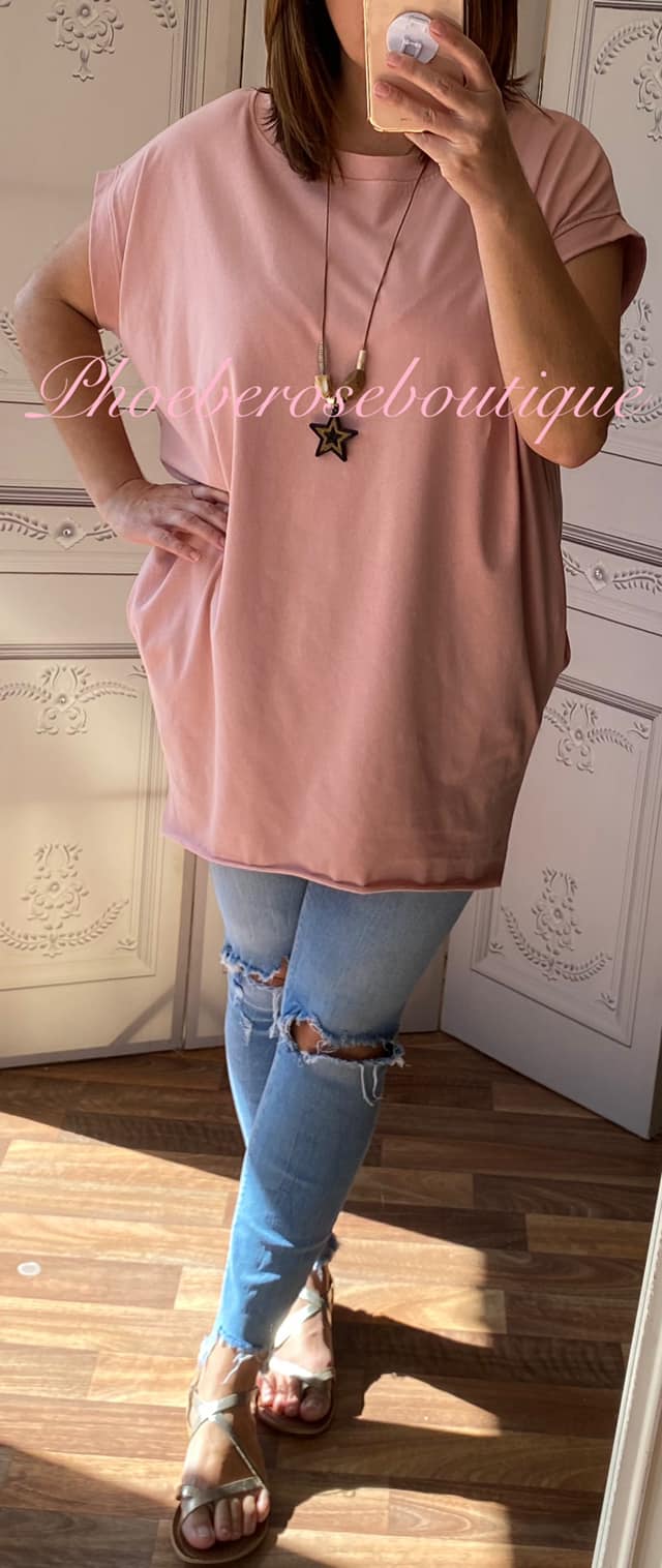 Be the first to review “Stretch Jersey Cap Sleeve Pocket Necklace Tunic Top – Soft Dusky Pink”