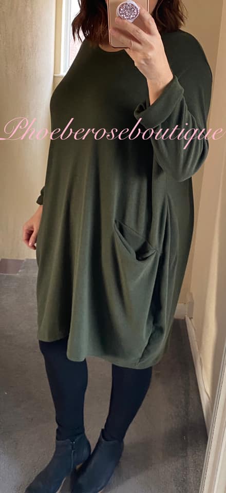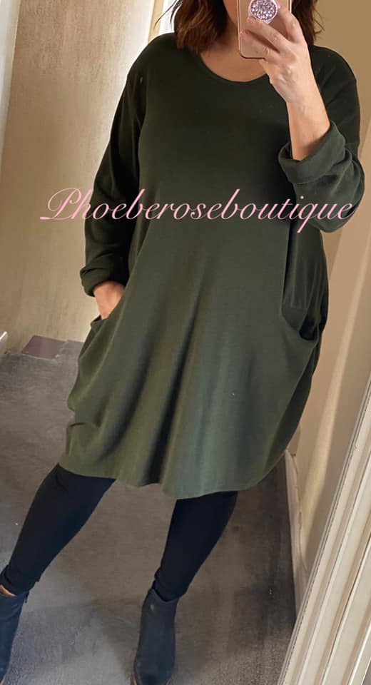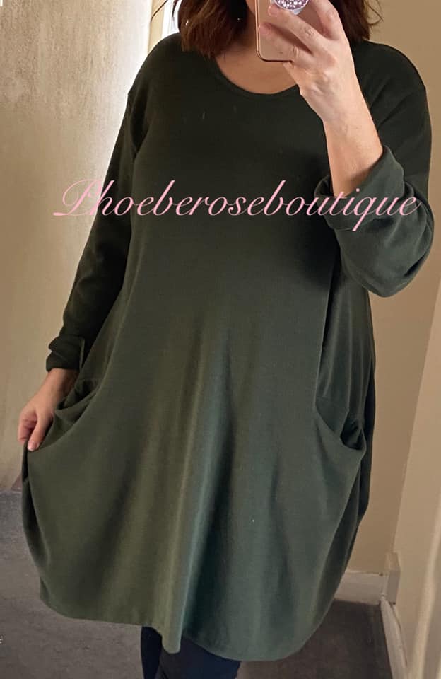 Super Soft Brushed Jersey Pocket Dress/Tunic – Khaki
