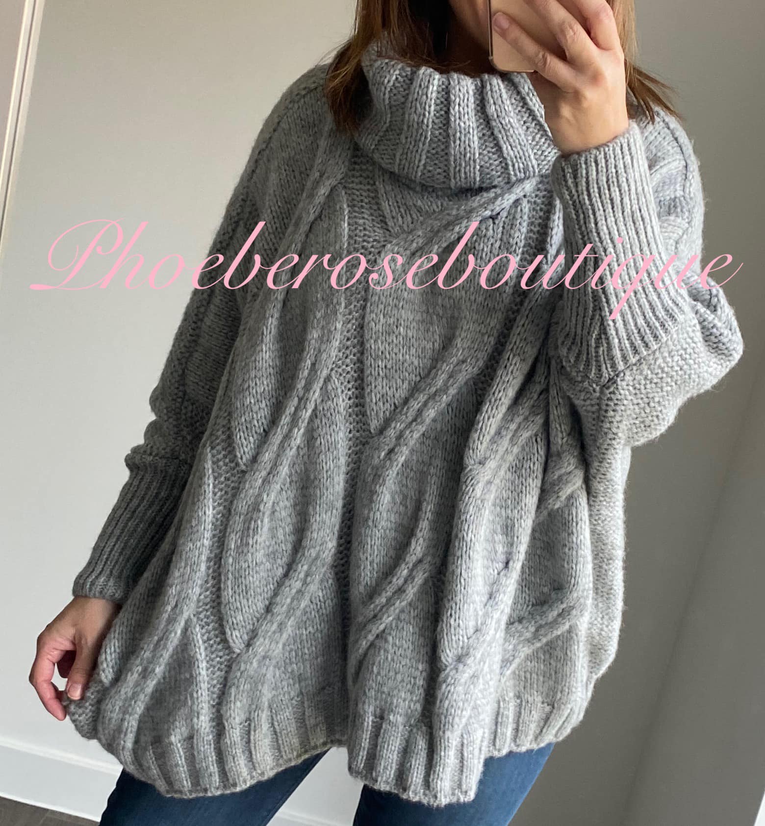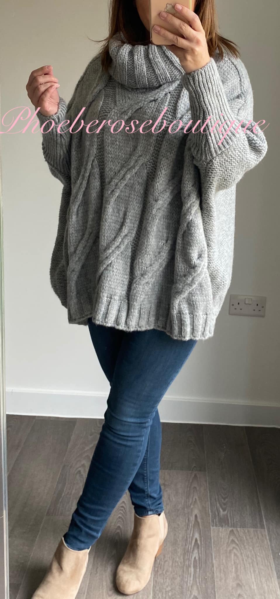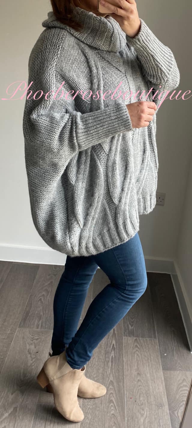 Super Soft Chunky Knot Cable Front Oversized Jumper – Soft Grey
