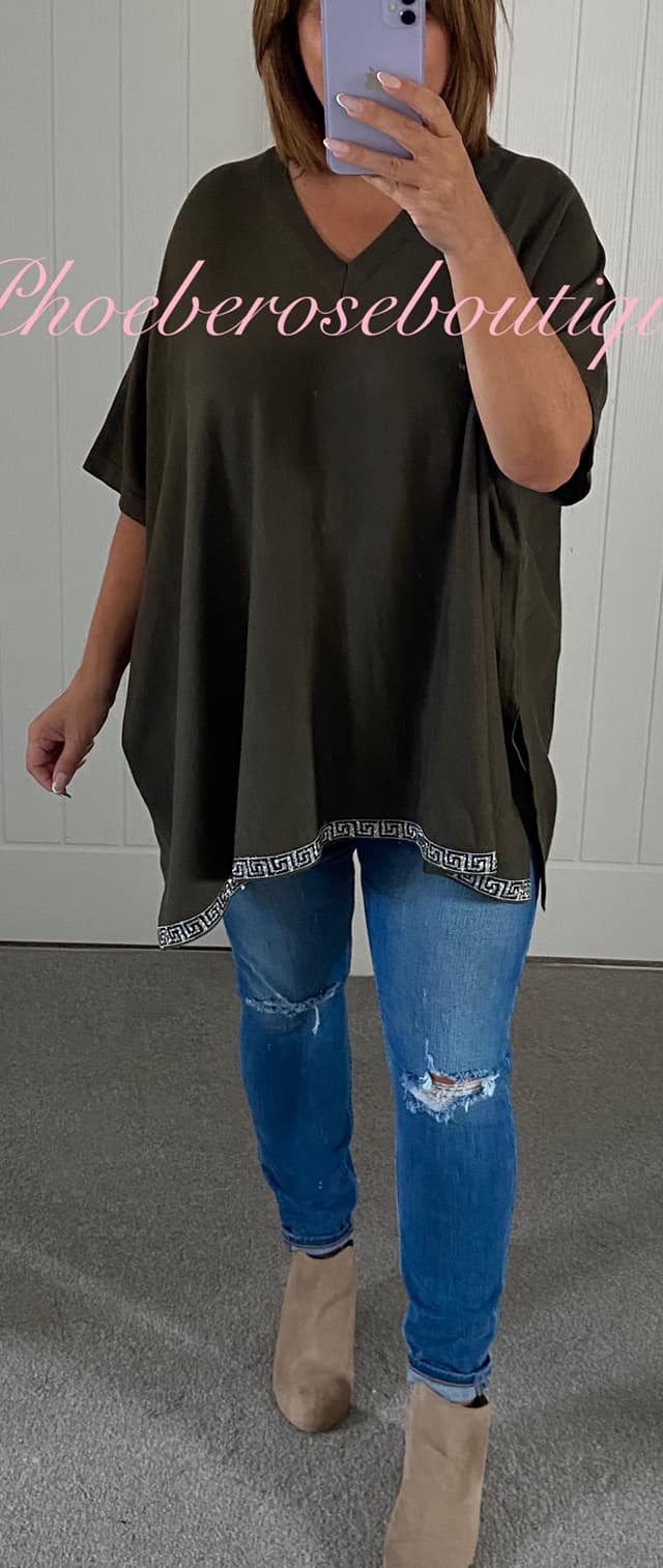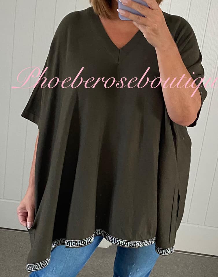 Be the first to review “Super Soft Diamante Hem Short Sleeve Oversized Jumper – Khaki”
