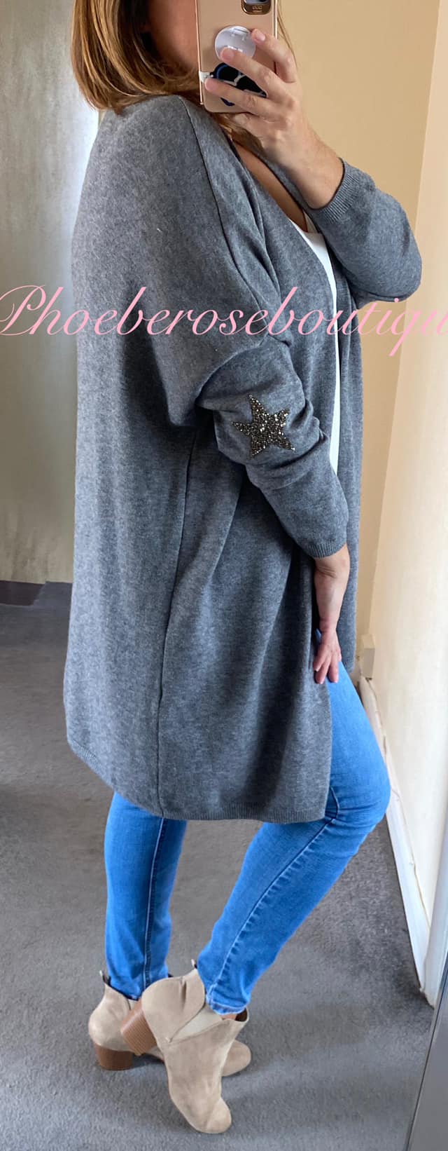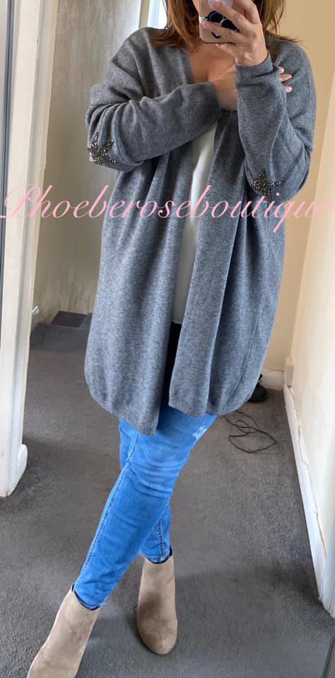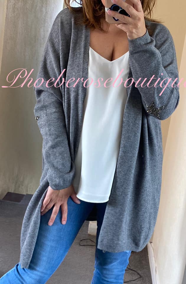 Super Soft Knit Sparkly Star Trim Cardigan- Dark Grey