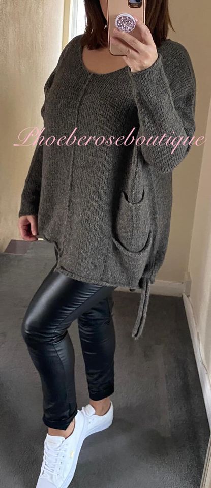 Be the first to review “Tie Side Super Soft Knit Chunky Jumper – Mocha”