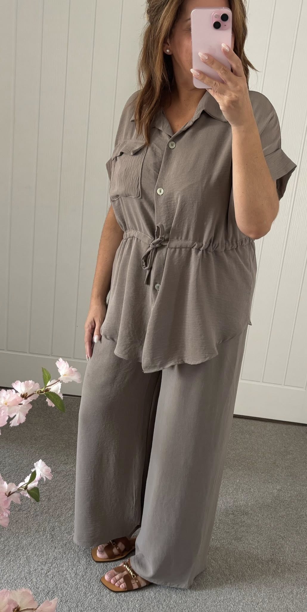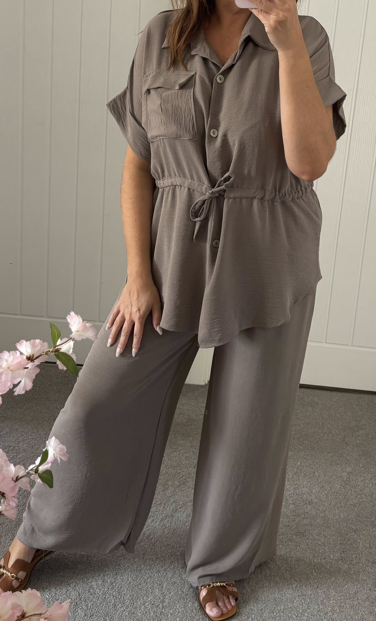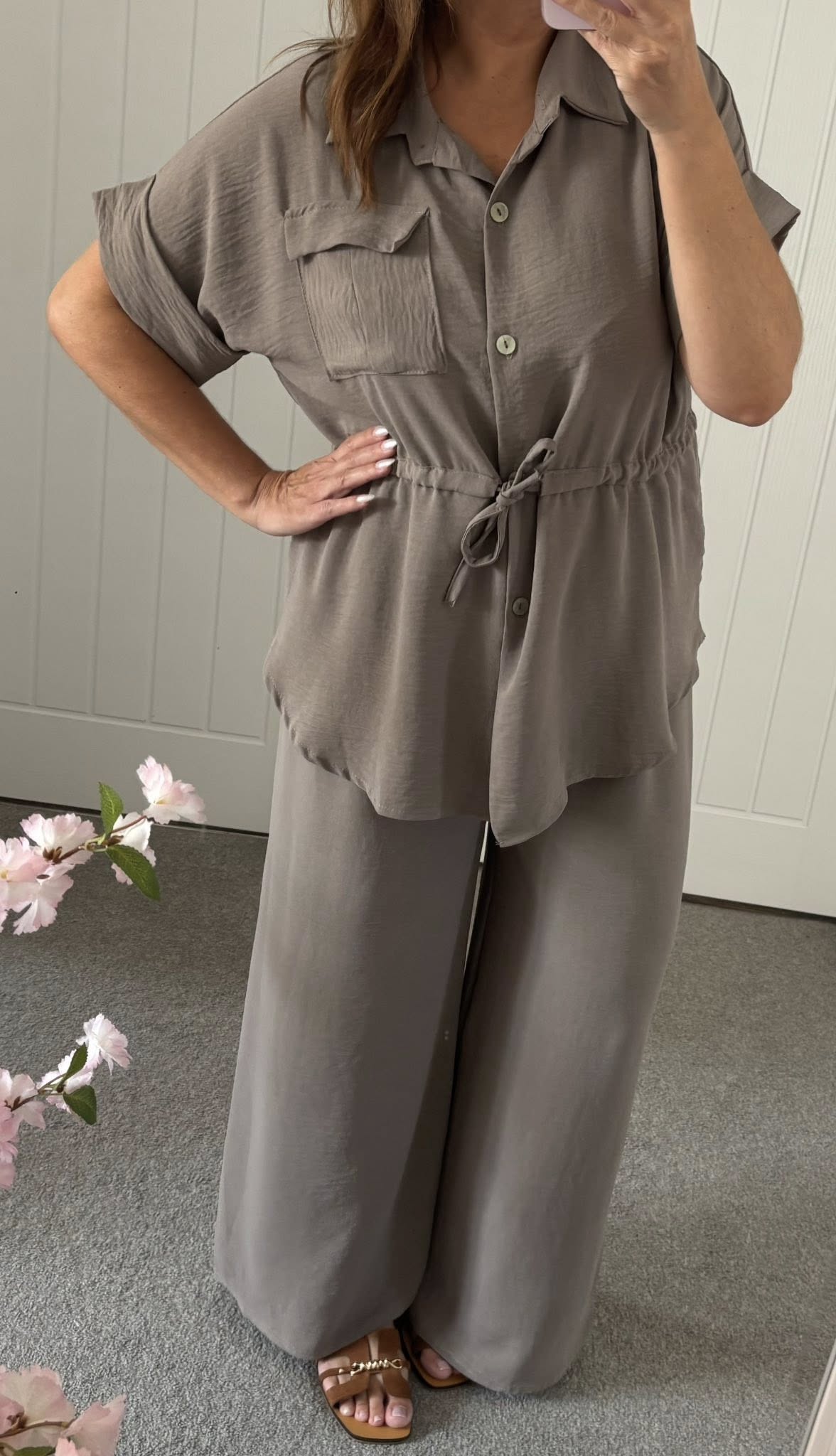 Tie Waist Shirt Co-Ord Trouser Set – Mocha