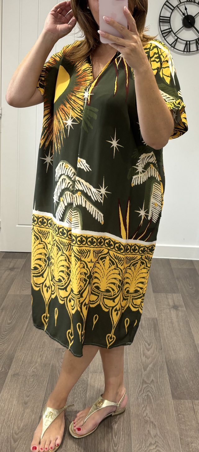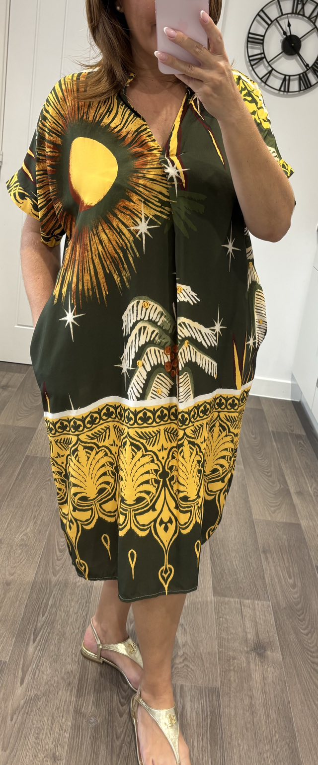 Tropical Nights Print Dress – Khaki