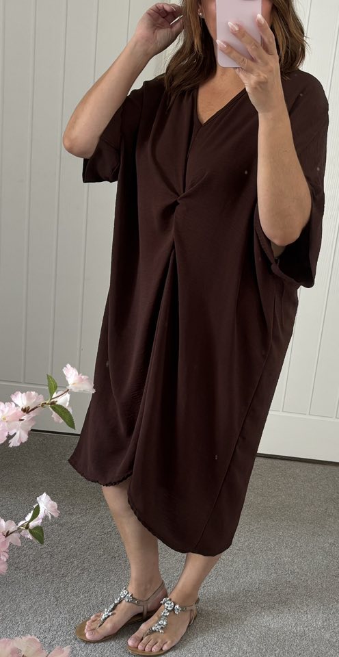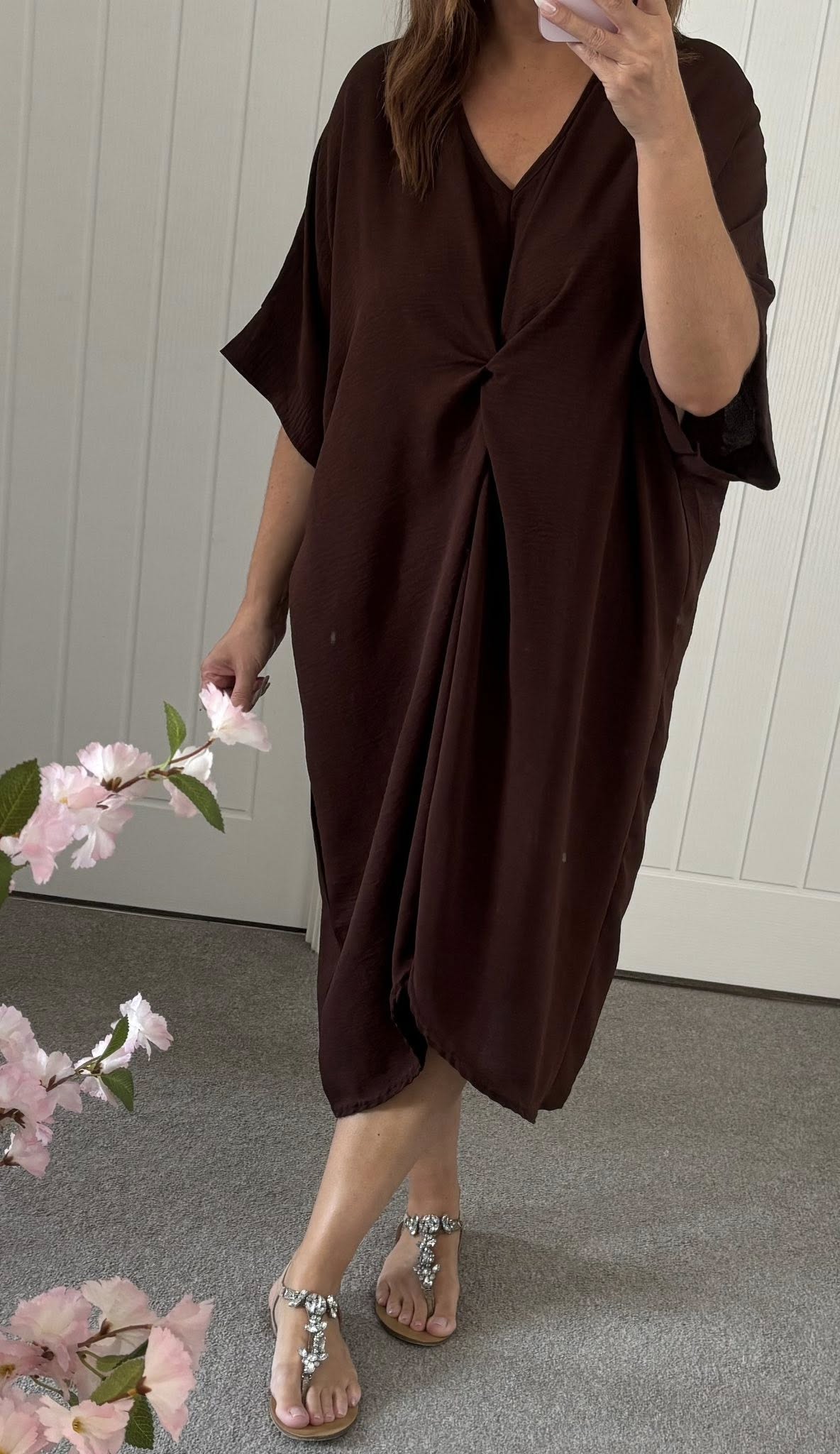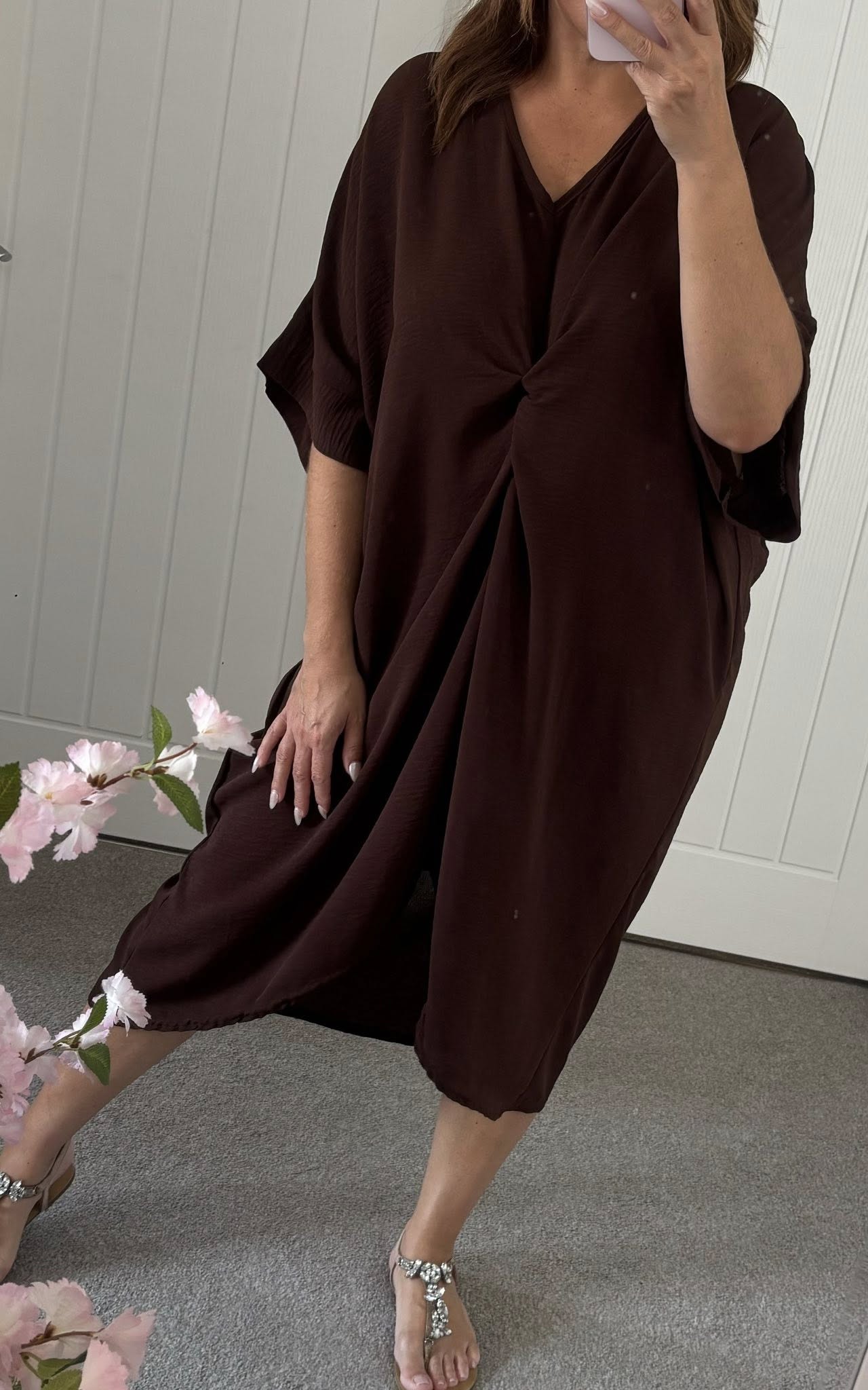 Be the first to review “Twist Front Hi Low Oversized Dress – Chocolate”