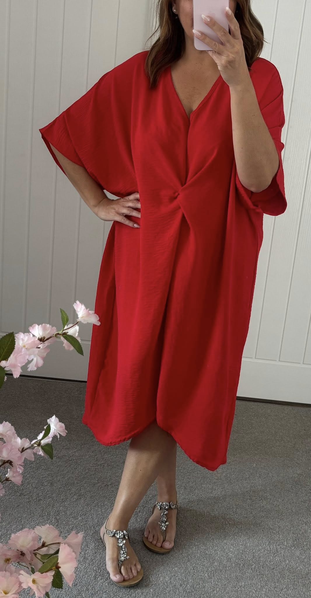 Be the first to review “Twist Front Hi Low Oversized Dress – Red”