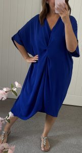 Stretch crepe feel fabric – Loose fit oversized style – Flattering twist front design, batwing style sleeves – Hi Low hemline – JUST £12.99!!