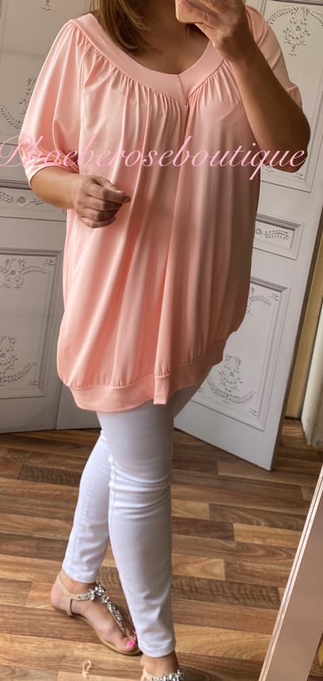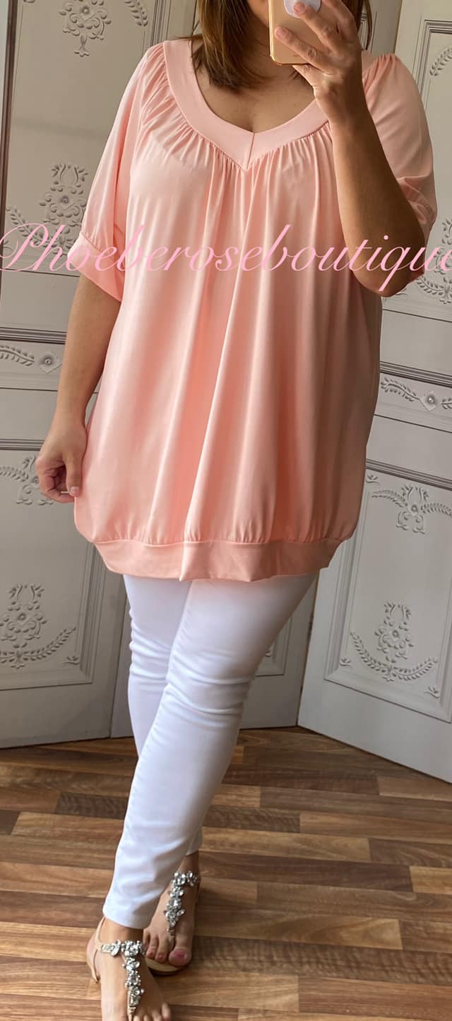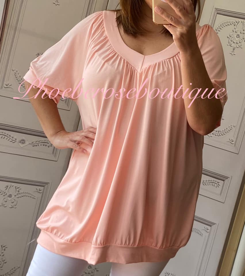 Be the first to review “V Neck Longline Ruched Top – Light Pink”