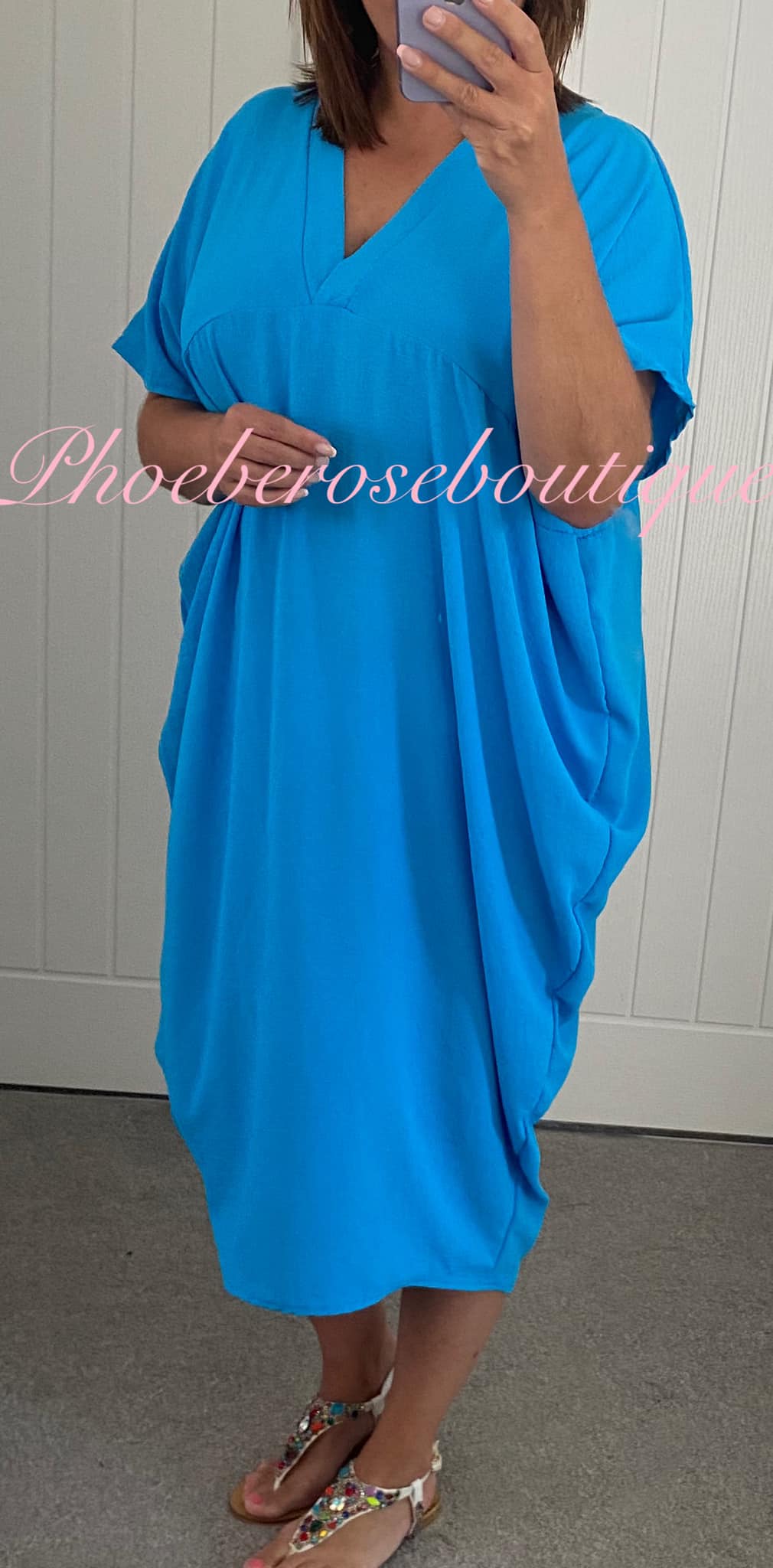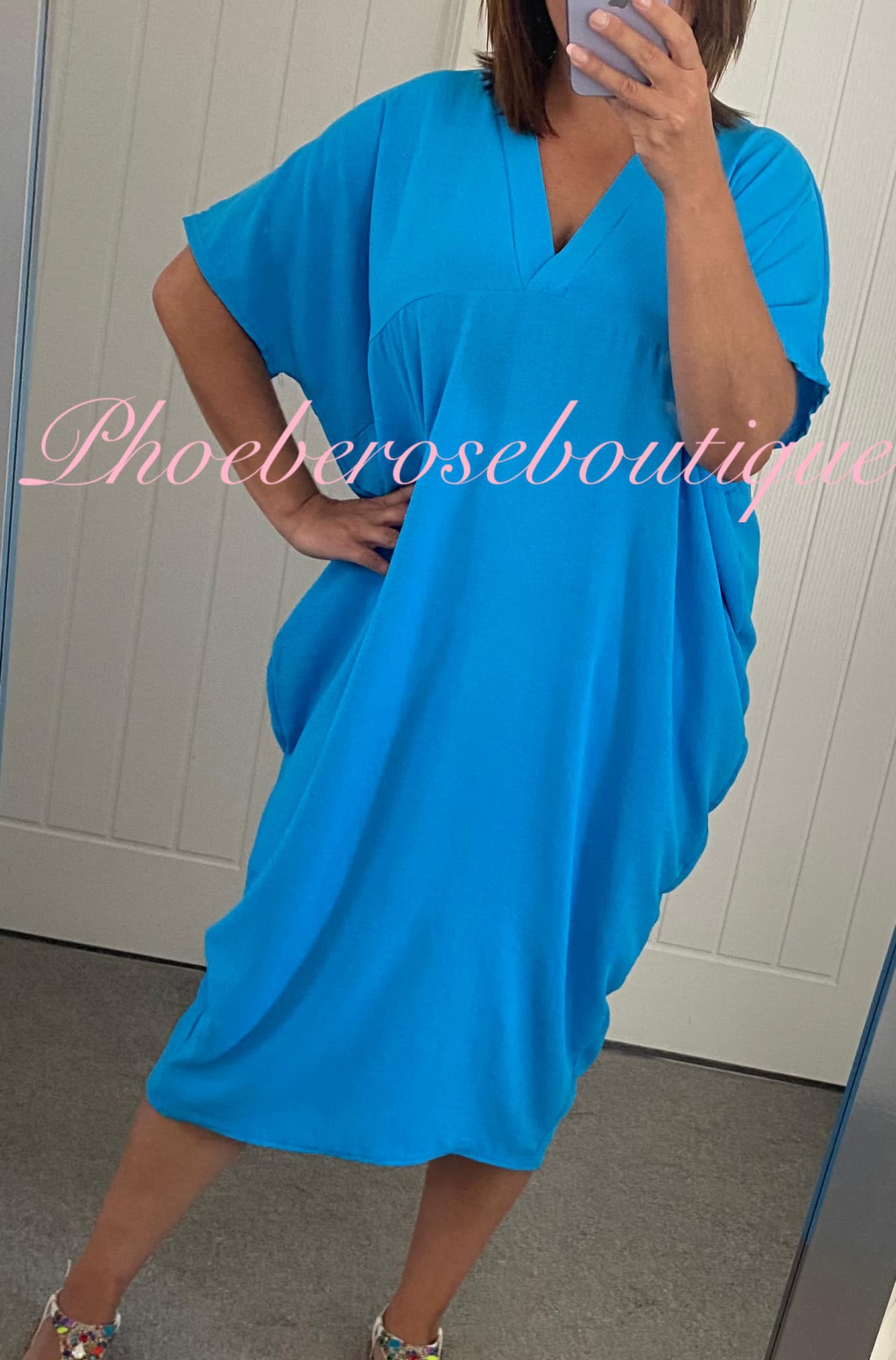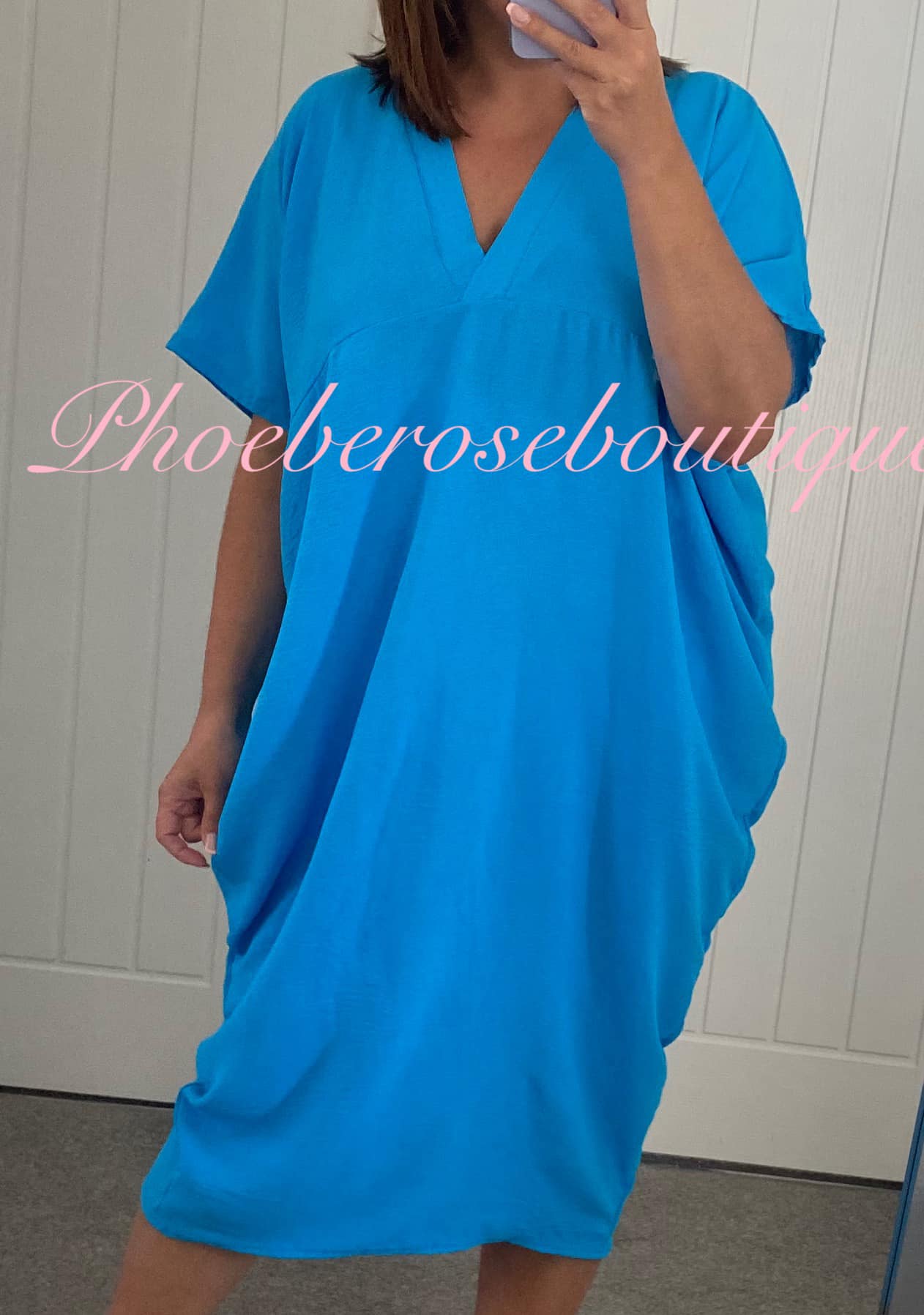 V Neck Loose Fit Batwing Drape Dress – Turquoise