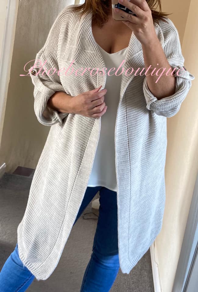 Waterfall Style Button Up Sleeve Cardigan – Beige