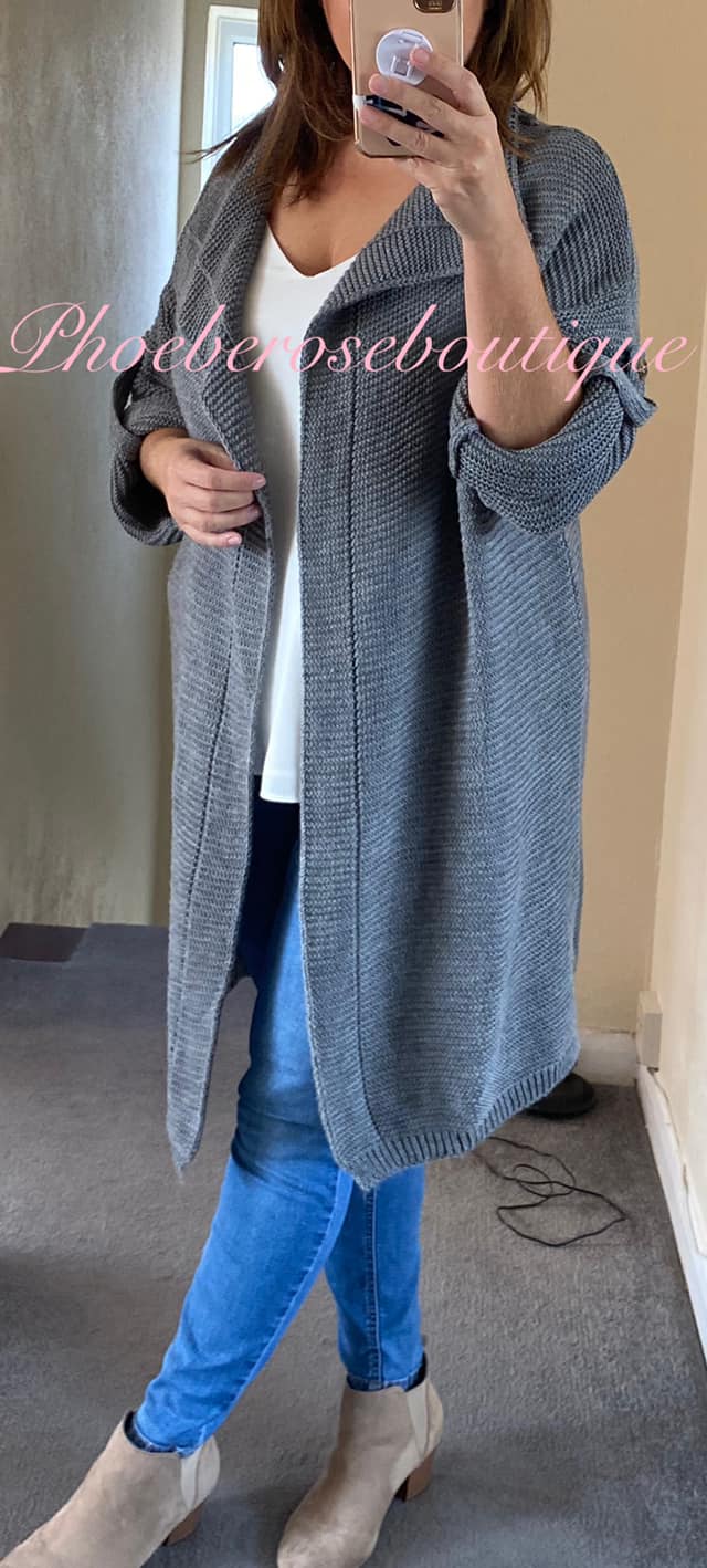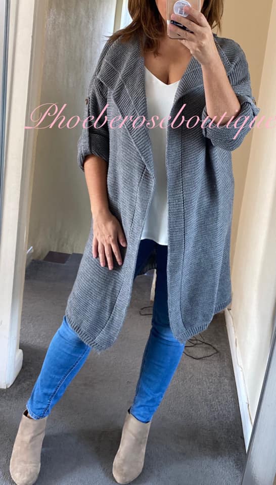 Waterfall Style Button Up Sleeve Cardigan – Dark Grey