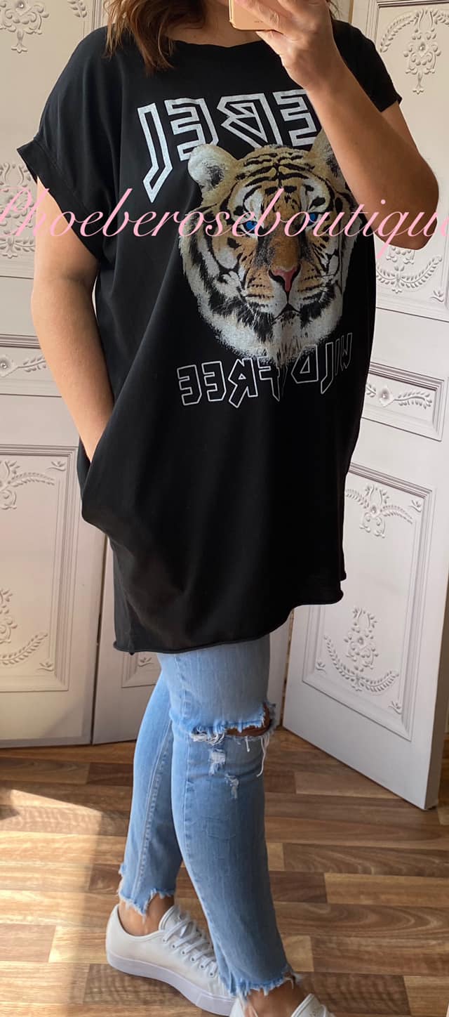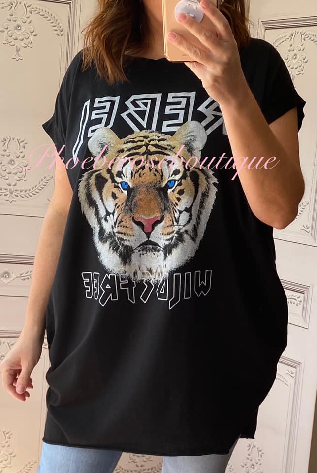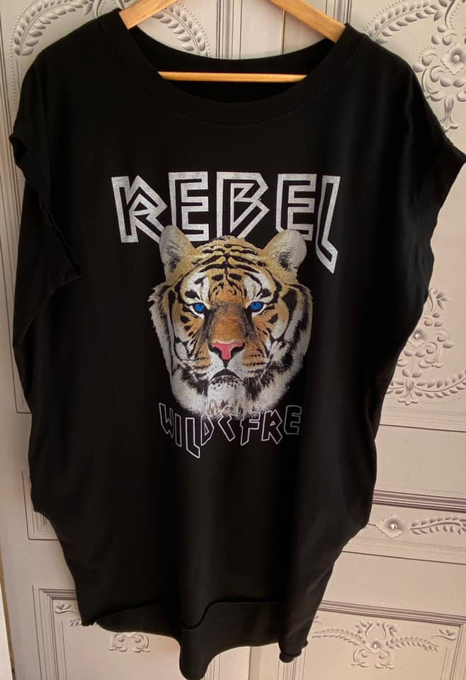 Wild Rebel Design Stretch Jersey Cap Sleeve Pocket Tunic Top – Black