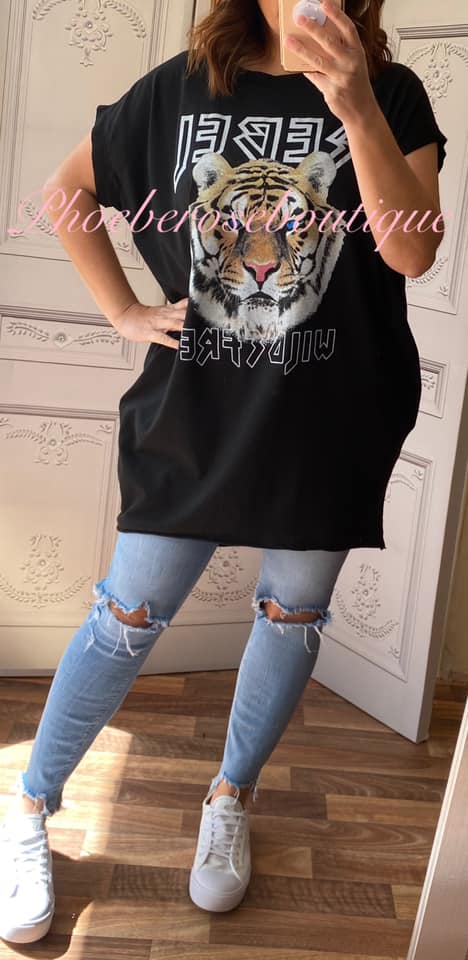 Be the first to review “Wild Rebel Design Stretch Jersey Cap Sleeve Pocket Tunic Top – Black”