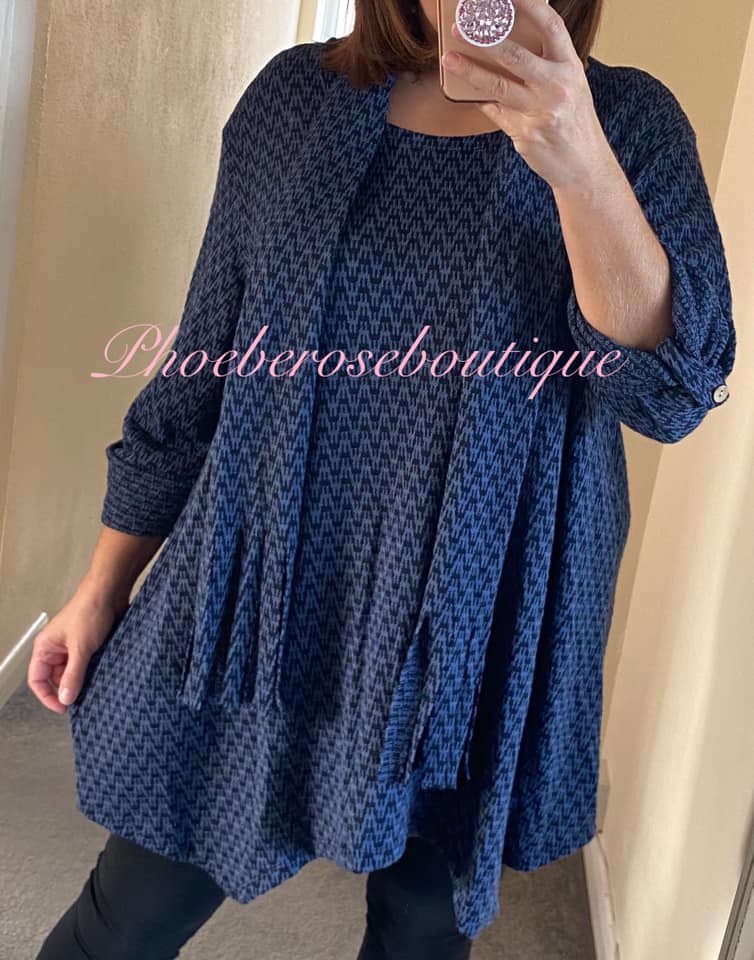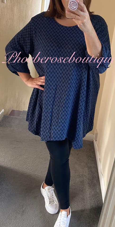 Zig Zag Jersey Dip Hem Loose Fit Scarf Top – Blue/Navy