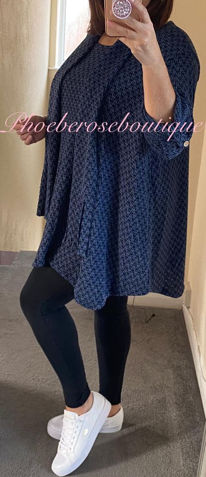 Be the first to review “Zig Zag Jersey Dip Hem Loose Fit Scarf Top – Blue/Navy”